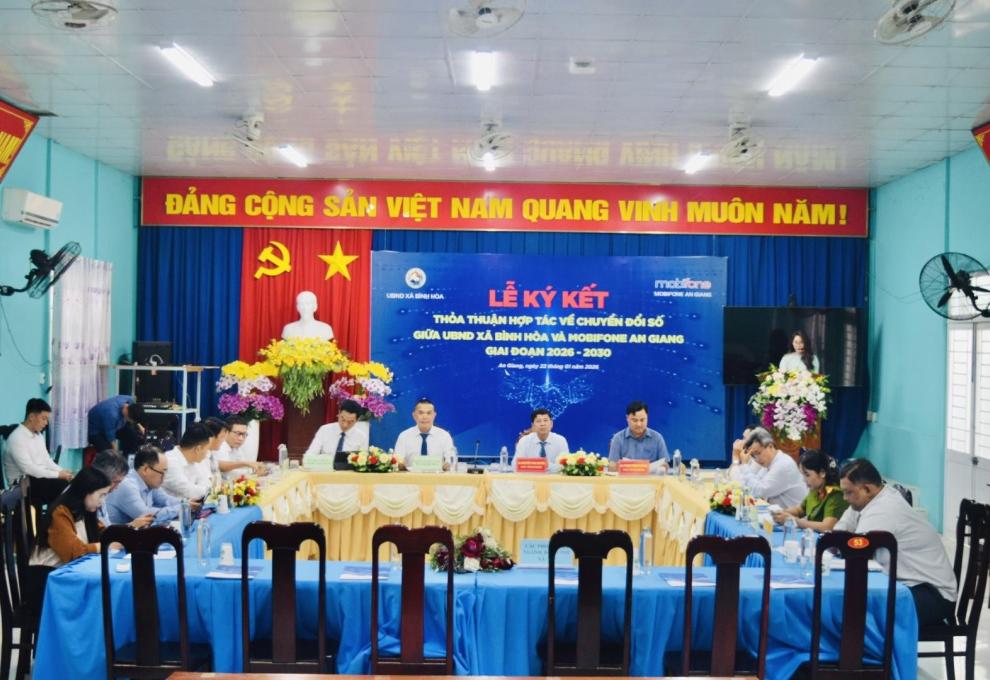 Chiều ngày 22/01/2026, Ủy ban nhân dân xã Bình Hòa tổ chức Lễ ký kết “Thỏa thuận phối hợp hỗ trợ công tác chuyển đổi số trên địa bàn xã Bình Hòa giai đoạn 2026 – 2030” giữa UBND xã Bình Hòa và MobiFone An Giang
