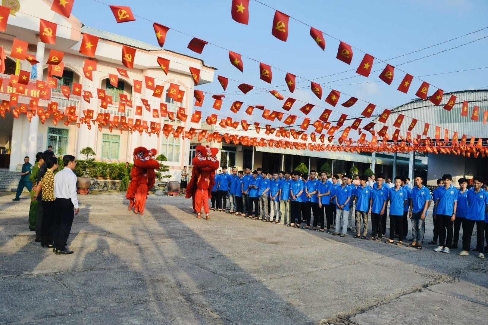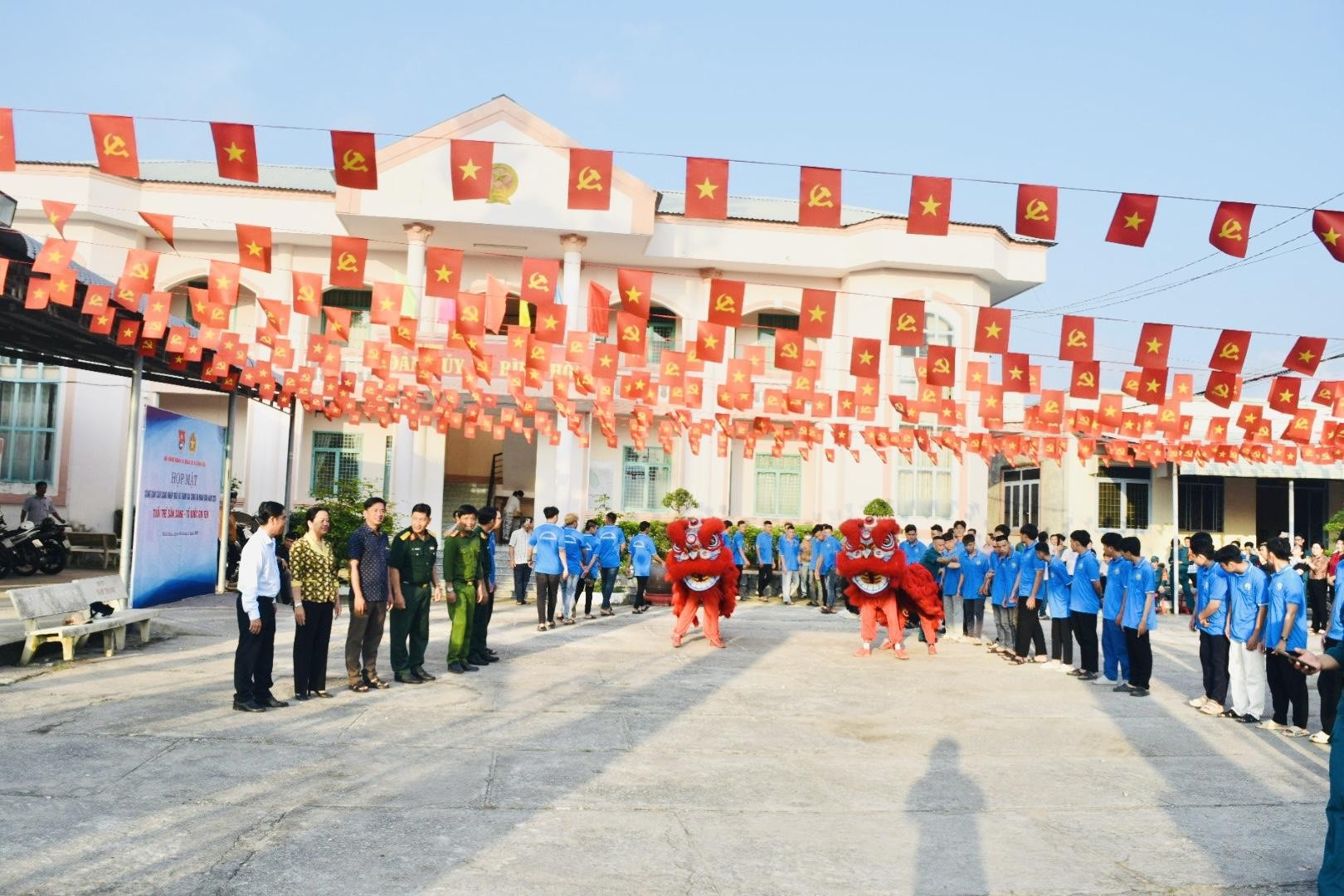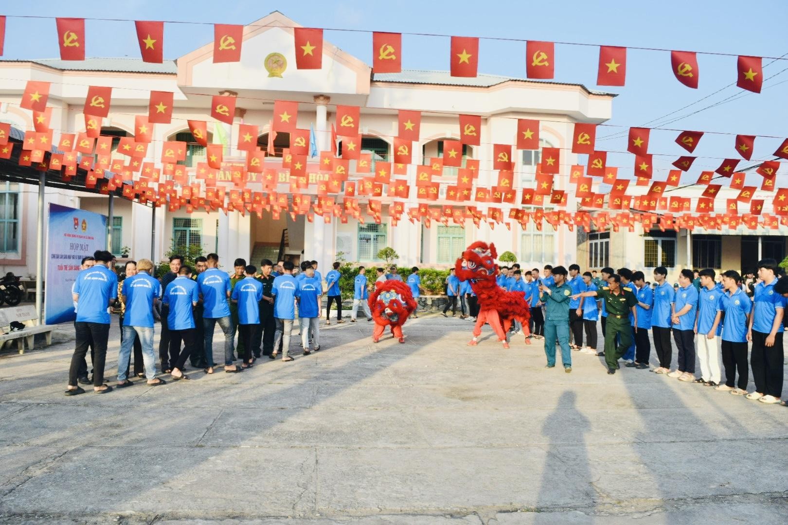 Chương trình đón tiếp diễn ra sôi nổi với tiết mục múa lân rộn ràng, tạo khí thế vui tươi, động viên tinh thần các thanh niên trước ngày lên đường làm nhiệm vụ thiêng liêng bảo vệ Tổ quốc. Những hình ảnh cờ hoa, tiếng trống lân vang lên đã góp phần làm cho buổi lễ thêm phần ý nghĩa, thể hiện sự quan tâm, chăm lo của địa phương đối với thế hệ trẻ.