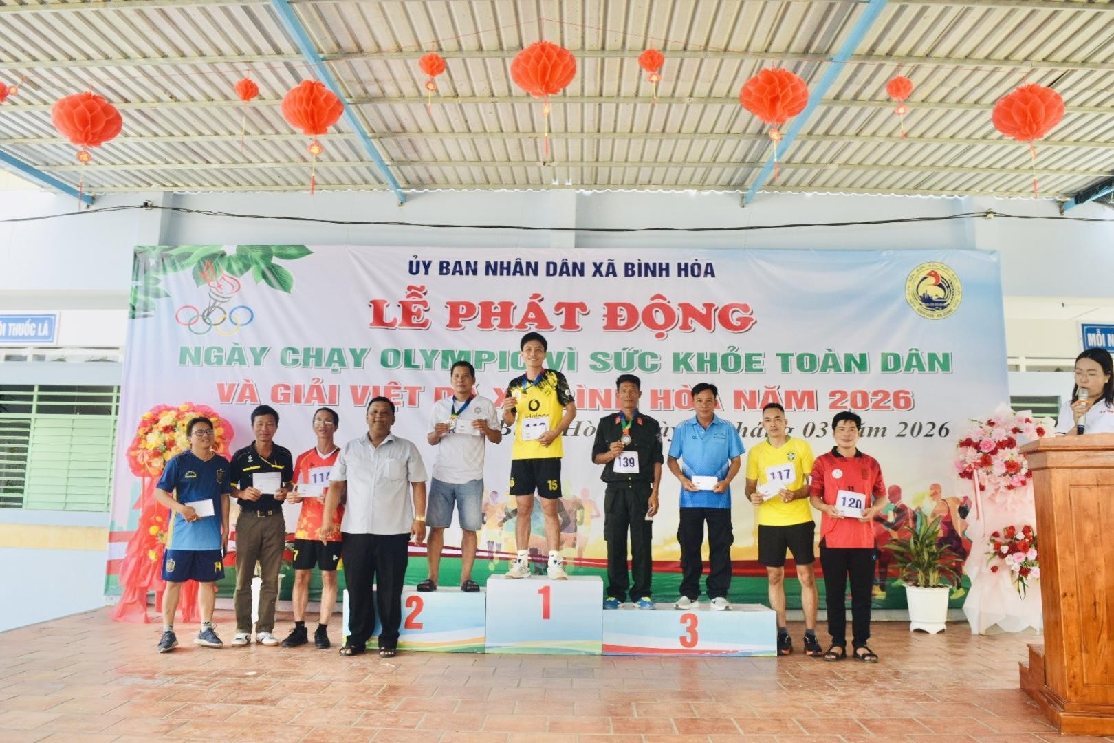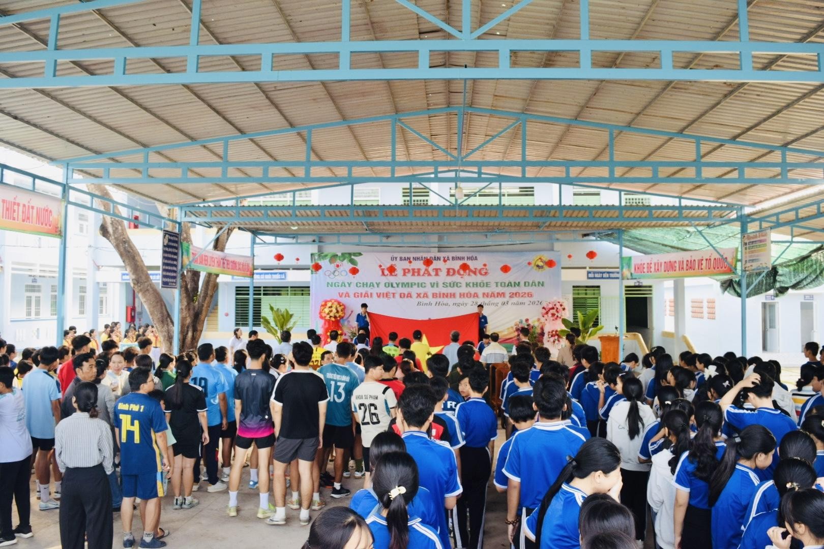 Tại buổi lễ, Ban Tổ chức đã đọc “Lời kêu gọi toàn dân tập thể dục” của Chủ tịch Hồ Chí Minh, đồng thời phát động Ngày chạy Olympic vì sức khỏe toàn dân và chính thức khai mạc Giải Việt dã xã Bình Hòa năm 2026. Hoạt động nhằm thiết thực chào mừng Ngày Thể thao Việt Nam (27/3), góp phần nâng cao nhận thức của người dân về vai trò, ý nghĩa của việc rèn luyện thể dục thể thao, xây dựng lối sống lành mạnh. Trong khuôn khổ chương trình, đại diện trọng tài và vận động viên đã thực hiện nghi thức tuyên thệ, thể hiện tinh thần thi đấu trung thực, cao thượng. Ban Tổ chức cũng đã trao cờ lưu niệm cho 18 đơn vị tham gia giải.
