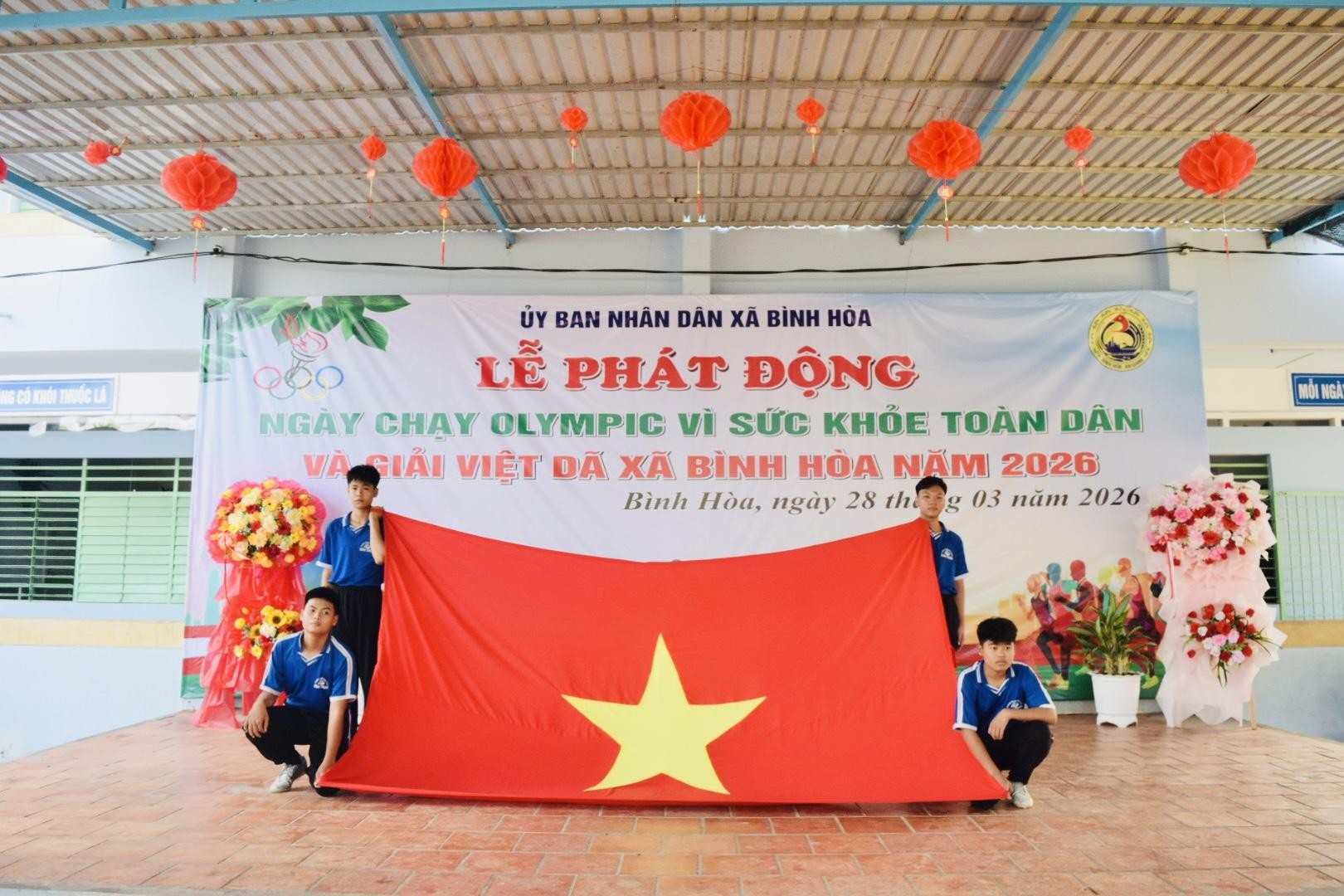 Sáng ngày 28/3/2026, tại Trường Tiểu học B Bình Thạnh, xã Bình Hòa long trọng tổ chức Lễ phát động Ngày chạy Olympic vì sức khỏe toàn dân gắn với khai mạc Giải Việt dã năm 2026. Tham dự buổi lễ có các đồng chí lãnh đạo địa phương, đại diện các ban, ngành, đoàn thể, lực lượng vũ trang cùng đông đảo cán bộ, công chức, viên chức, đoàn viên, thanh niên, học sinh và Nhân dân trên địa bàn.
