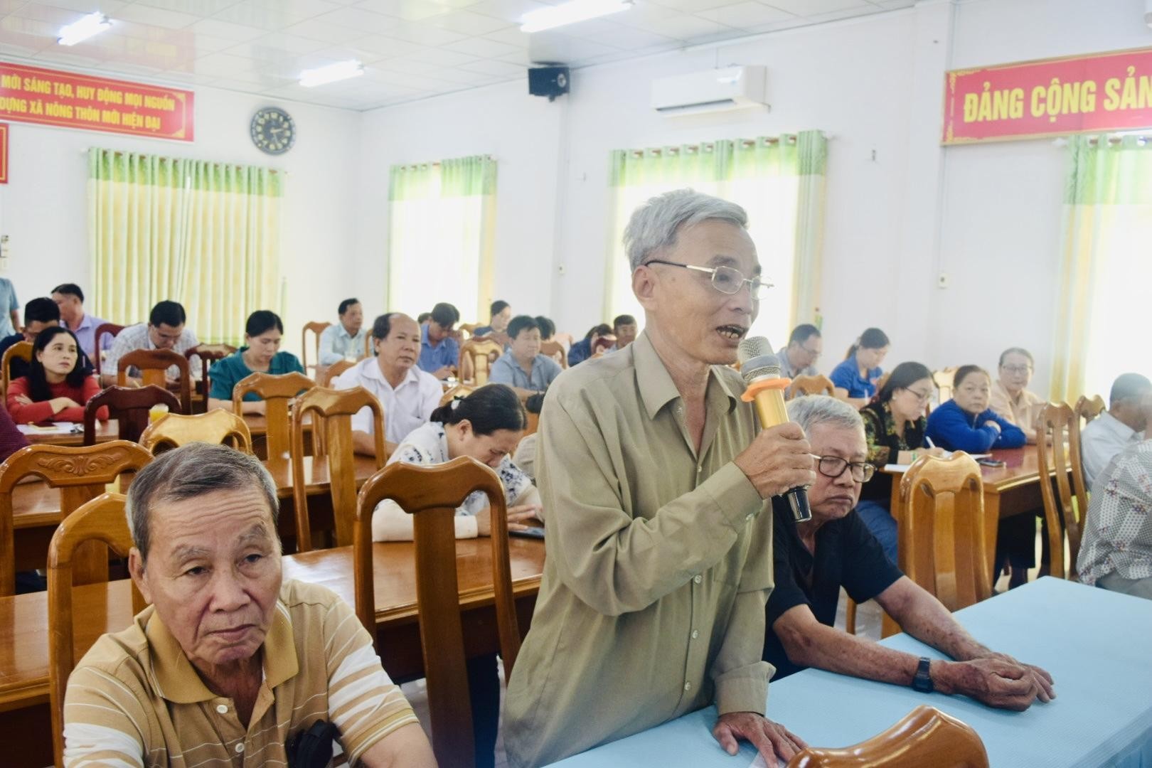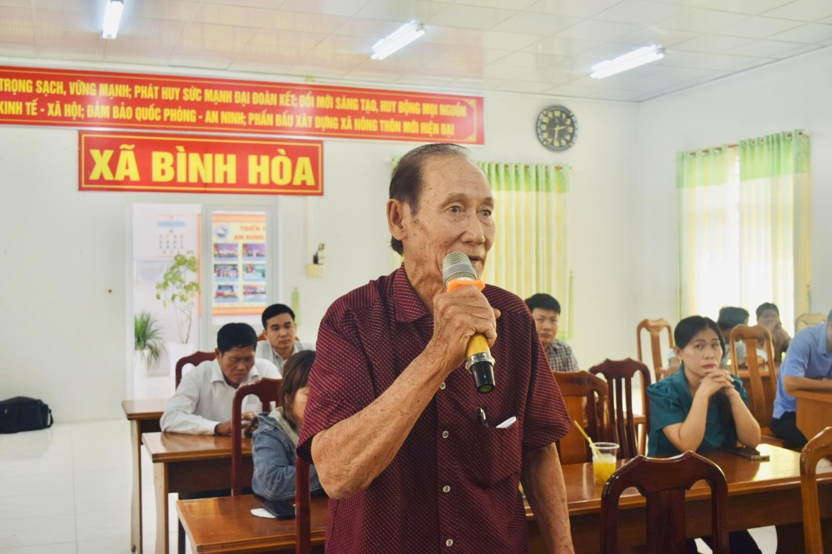 Cử tri xã Bình Hòa bày tỏ sự phấn khởi trước những kết quả đạt được trong phát triển kinh tế – xã hội của tỉnh. Đồng thời, cử tri đã phát biểu nhiều ý kiến, kiến nghị liên quan đến đời sống dân sinh. Cử tri phản ánh hệ thống đèn chiếu sáng trên tuyến Tỉnh lộ 941 chưa được thắp sáng, đề nghị sớm khắc phục nhằm bảo đảm an toàn giao thông, tạo thuận tiện cho người dân đi lại. Bên cạnh đó, cử tri quan tâm đến tình trạng giá cả và đầu ra nông sản còn nhiều biến động, thiếu ổn định; các vấn đề liên quan đến công tác giải phóng mặt bằng dự án tuyến tránh Long Xuyên. Cử tri cũng kiến nghị các ngành chức năng tăng cường kiểm tra, ngăn chặn kịp thời tình trạng thực phẩm bẩn lưu thông trên thị trường; xử lý tình trạng ô nhiễm tiếng ồn từ hoạt động karaoke trong khu dân cư; đẩy mạnh công tác tuyên truyền, hướng dẫn học sinh sử dụng xe điện an toàn. Đồng thời, cử tri đề nghị làm rõ và tuyên truyền đầy đủ các quy định liên quan đến bảo hiểm xã hội đối với người cao tuổi.