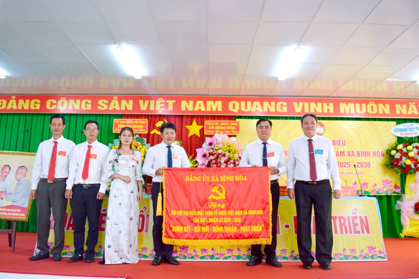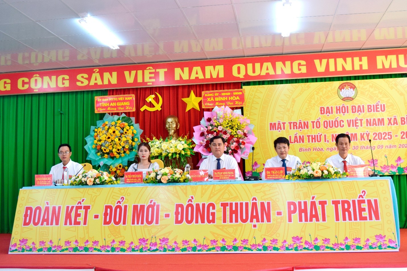 Trong 2 ngày 29 và 30/9, Ủy ban Mặt trận Tổ quốc Việt Nam xã Bình Hòa tổ chức Đại hội đại biểu Ủy ban Mặt trận Tổ quốc Việt Nam xã Bình Hòa lần thứ I, nhiệm kỳ 2025 – 2030. Phó Bí thư Tỉnh ủy, Trưởng đoàn Đại biểu Quốc hội tỉnh, Chủ tịch Ủy ban Mặt trận Tổ quốc Việt Nam tỉnh An Giang Trần Thị Thanh Hương đến dự và chỉ đạo đại hội. Cùng dự có Ông Lê Phước Dũng, Bí thư Đảng ủy, Chủ tịch HĐND xã Bình Hòa; Ông Trần Hữu Phúc, Phó Bí thư Thường trực Đảng ủy xã; Ông Nguyễn Tấn Phong, Phó Bí thư Đảng ủy, Chủ tịch UBND xã, cùng với sự tham dự của 150 đại biểu chính thức, đại diện cho các tầng lớp nhân dân, các dân tộc, tôn giáo, trí thức, doanh nhân, đoàn viên, hội viên và kiều bào là những gương mặt tiêu biểu trong khối đại đoàn kết toàn dân tộc trên địa bàn.