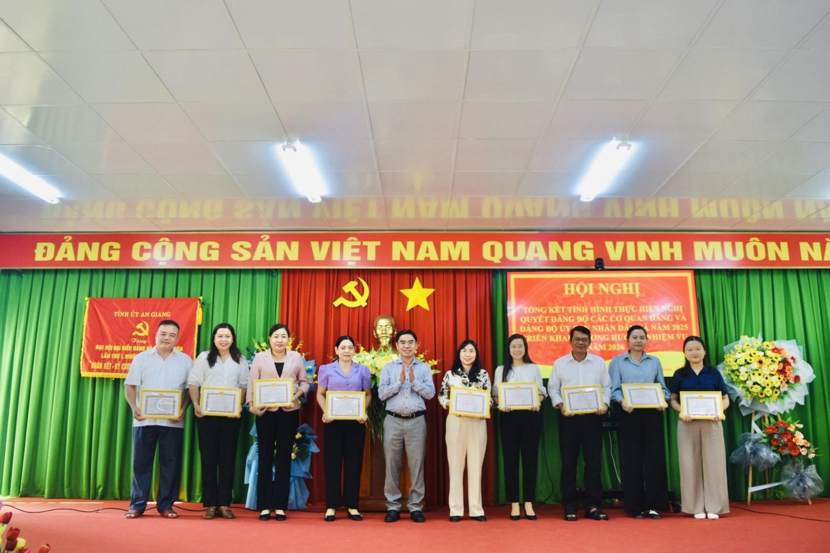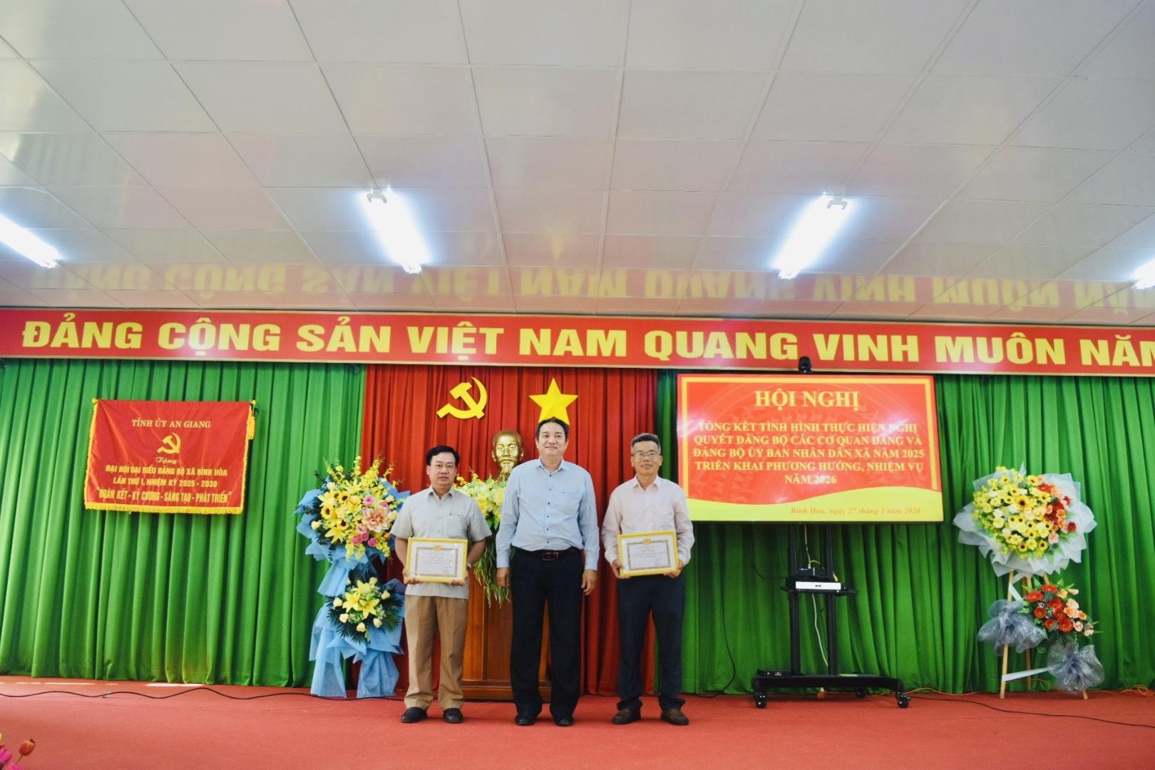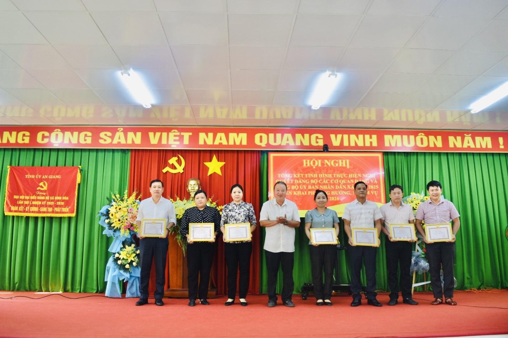 Dịp này, Đảng bộ các cơ quan Đảng và Đảng bộ UBND xã Bình Hòa đã khen thưởng các tổ chức Đảng và đảng viên hoàn thành xuất sắc nhiệm vụ năm 2025, nhằm ghi nhận, biểu dương những tập thể, cá nhân tiêu biểu trong công tác xây dựng Đảng và thực hiện nhiệm vụ chính trị được giao.