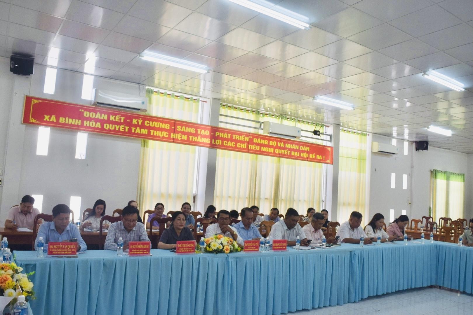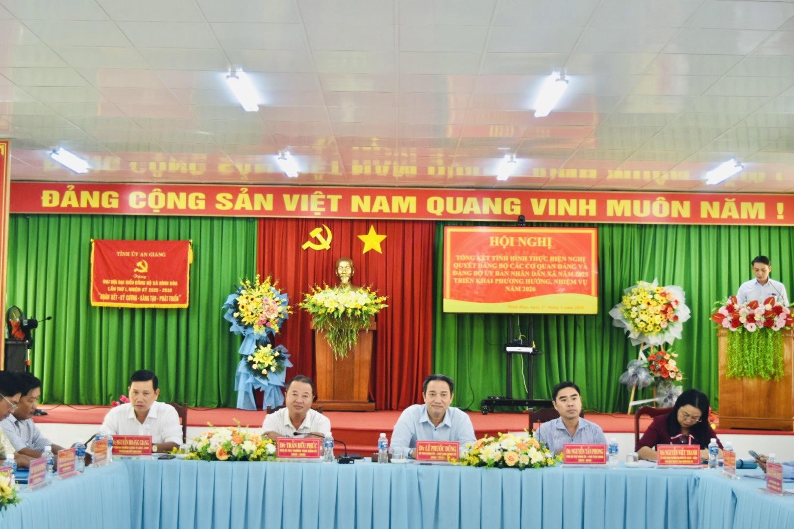 Chiều 27/01/2026, Đảng bộ các cơ quan Đảng và Đảng bộ Ủy ban nhân dân xã Bình Hòa tổ chức hội nghị tổng kết tình hình thực hiện nghị quyết năm 2025, đồng thời triển khai phương hướng, nhiệm vụ năm 2026. Tham dự hội nghị có đồng chí Lê Phước Dũng, Bí thư Đảng ủy, Chủ tịch HĐND xã Bình Hòa; đồng chí Trần Hữu Phúc, Phó Bí thư Thường trực Đảng ủy xã; đồng chí Nguyễn Tấn Phong, Phó Bí thư Đảng ủy, Chủ tịch UBND xã, cùng các đồng chí trong Ban Thường vụ, Ban Chấp hành Đảng ủy và toàn thể đảng viên các chi bộ trực thuộc.