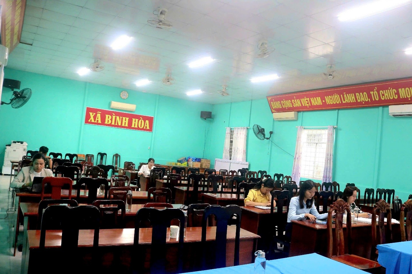 Tham dự hội nghị tại điểm cầu UBND xã Bình Hòa có công chức làm văn thư, lưu trữ của Văn phòng HĐND và UBND; Phòng Kinh tế; Phòng Văn hóa- xã hội; Trung tâm phục vụ hành chính công; Trung tâm Dịch vụ Tổng hợp; Công chức phụ trách công nghệ thông tin của UBND xã.