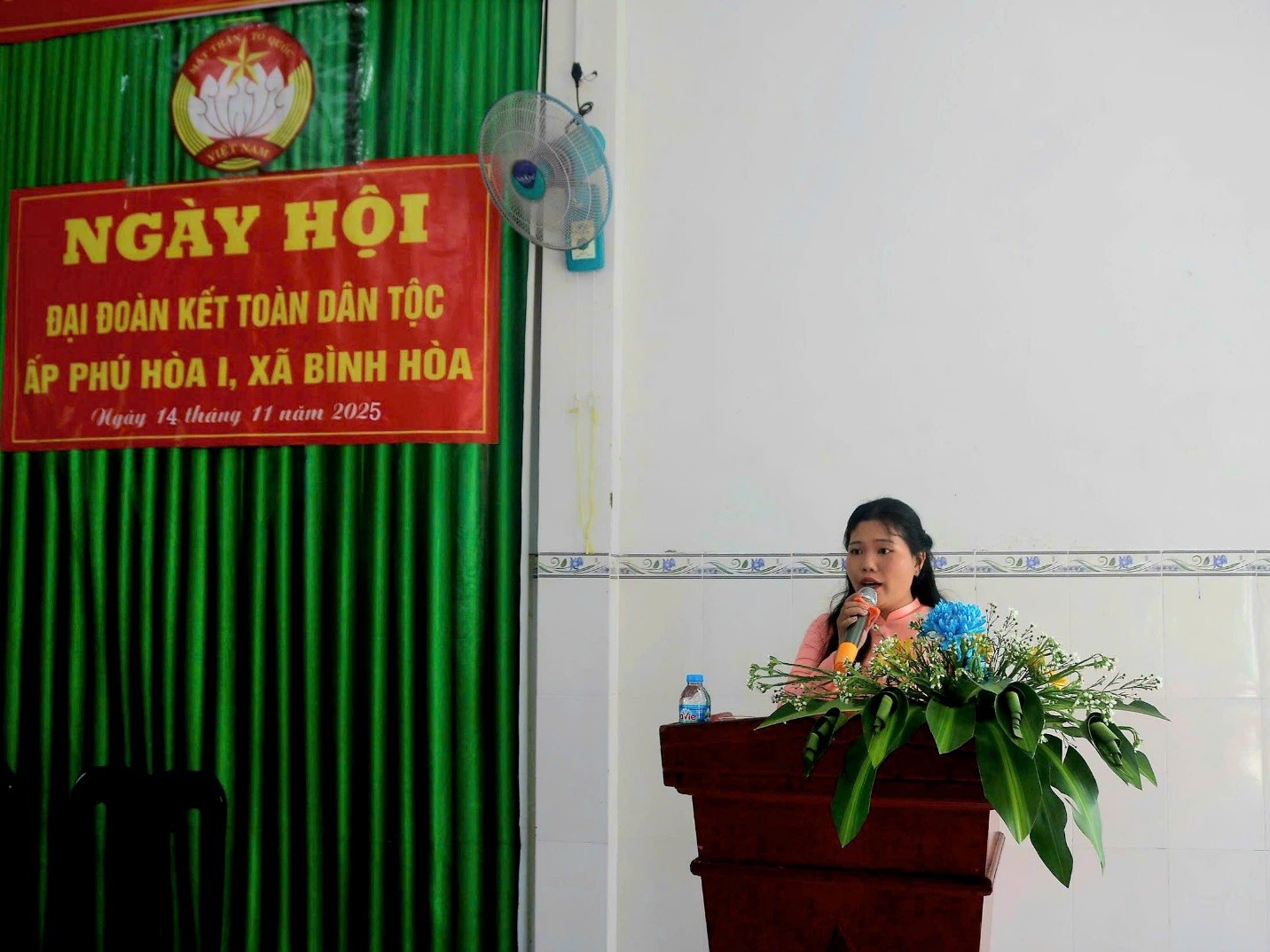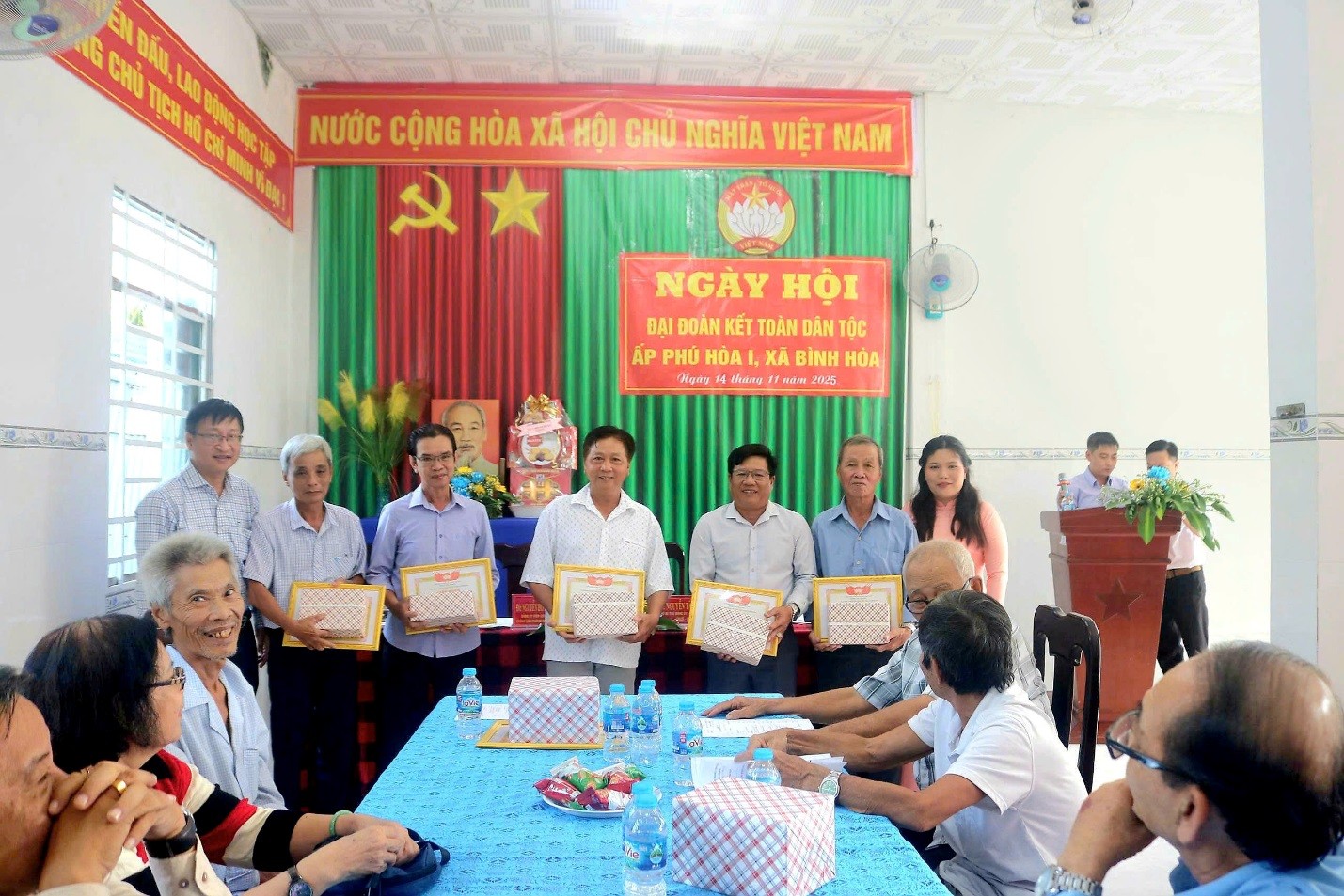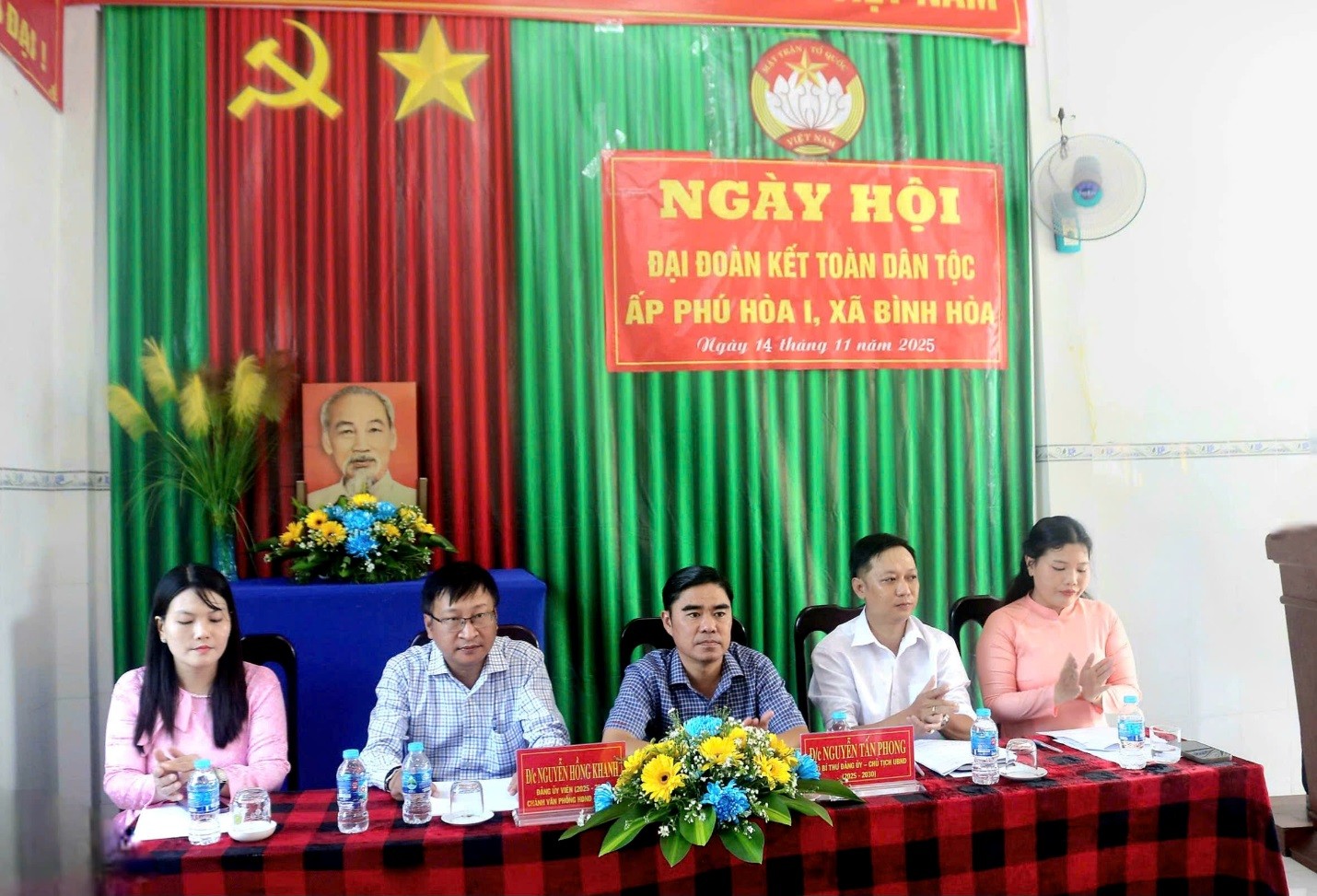 Nhân kỷ niệm 95 năm Ngày thành lập Mặt trận Dân tộc thống nhất Việt Nam (18/11/1930 - 18/11/2025), chiều ngày 14/11/2025, Ban công tác Mặt trận ấp Phú Hòa I, xã Bình Hòa tổ chức Ngày hội Đại đoàn kết toàn dân tộc năm 2025. Đến dự có ông Nguyễn Tấn Phong- Phó Bí thư Đảng ủy, Chủ tịch UBND xã Bình Hòa.