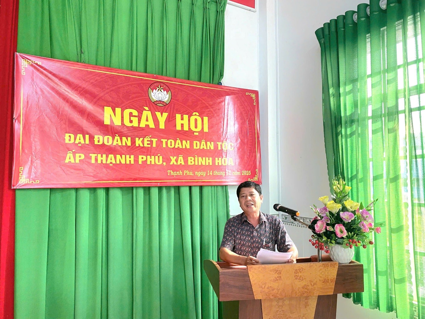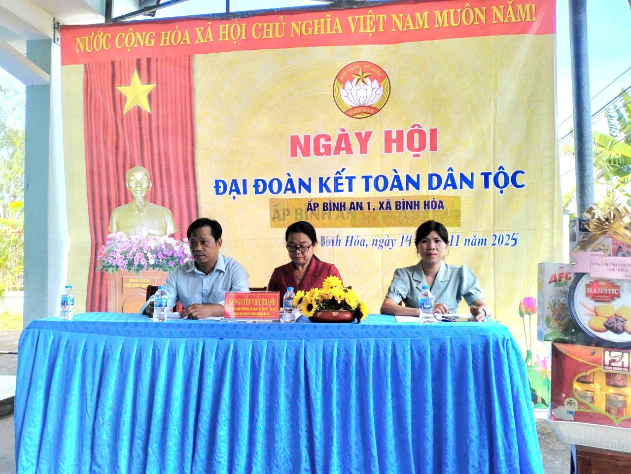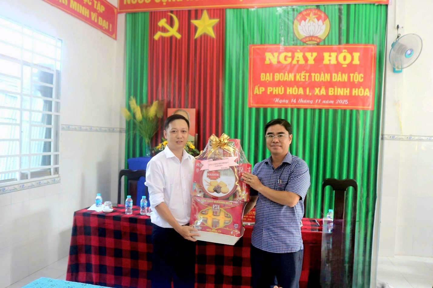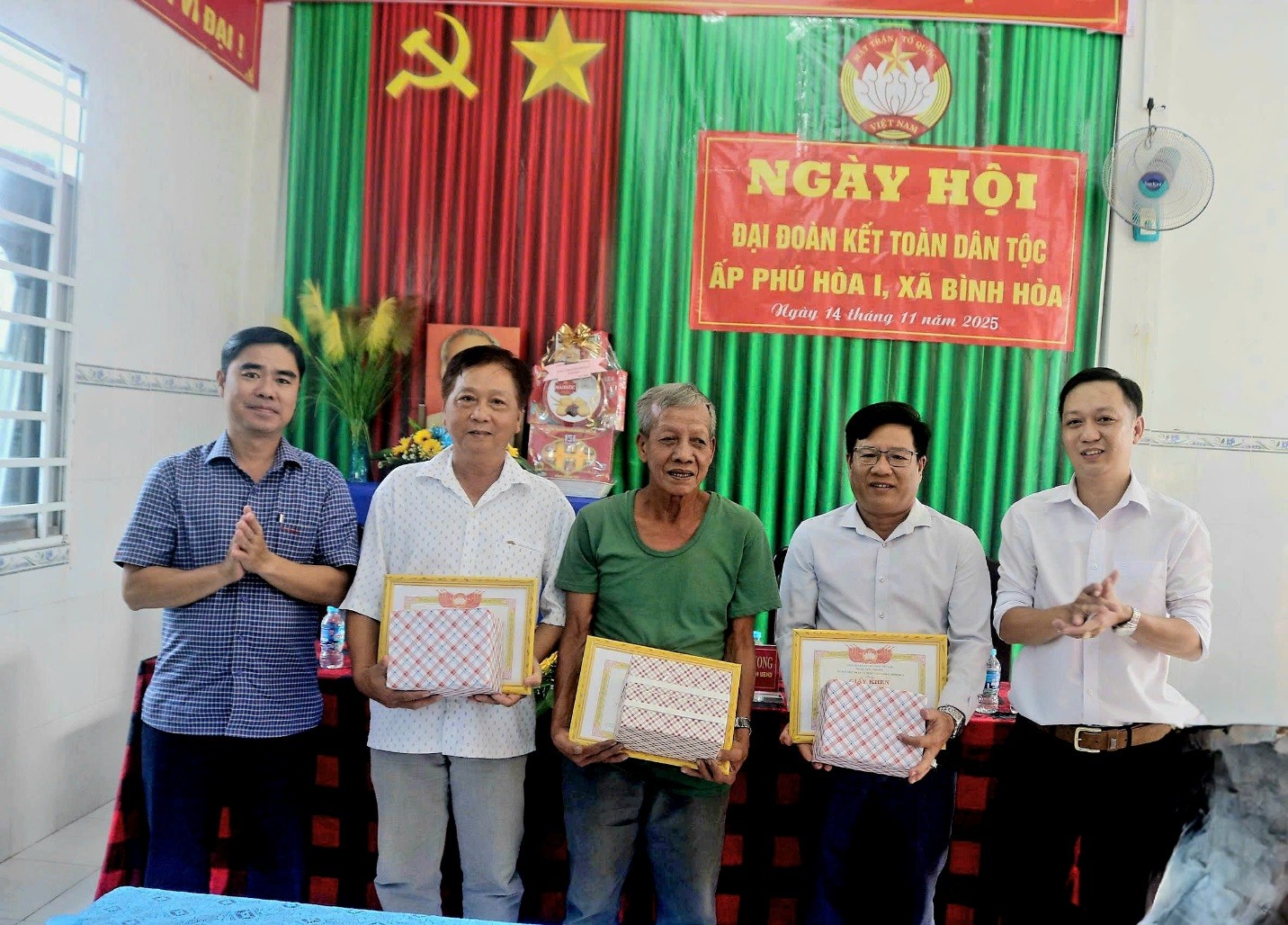 Nhân kỷ niệm 95 năm Ngày thành lập Mặt trận Dân tộc thống nhất Việt Nam (18/11/1930 - 18/11/2025), chiều ngày 14/11/2025, Ban công tác Mặt trận ấp Phú Hòa I, xã Bình Hòa tổ chức Ngày hội Đại đoàn kết toàn dân tộc năm 2025. Đến dự có ông Nguyễn Tấn Phong- Phó Bí thư Đảng ủy, Chủ tịch UBND xã Bình Hòa.