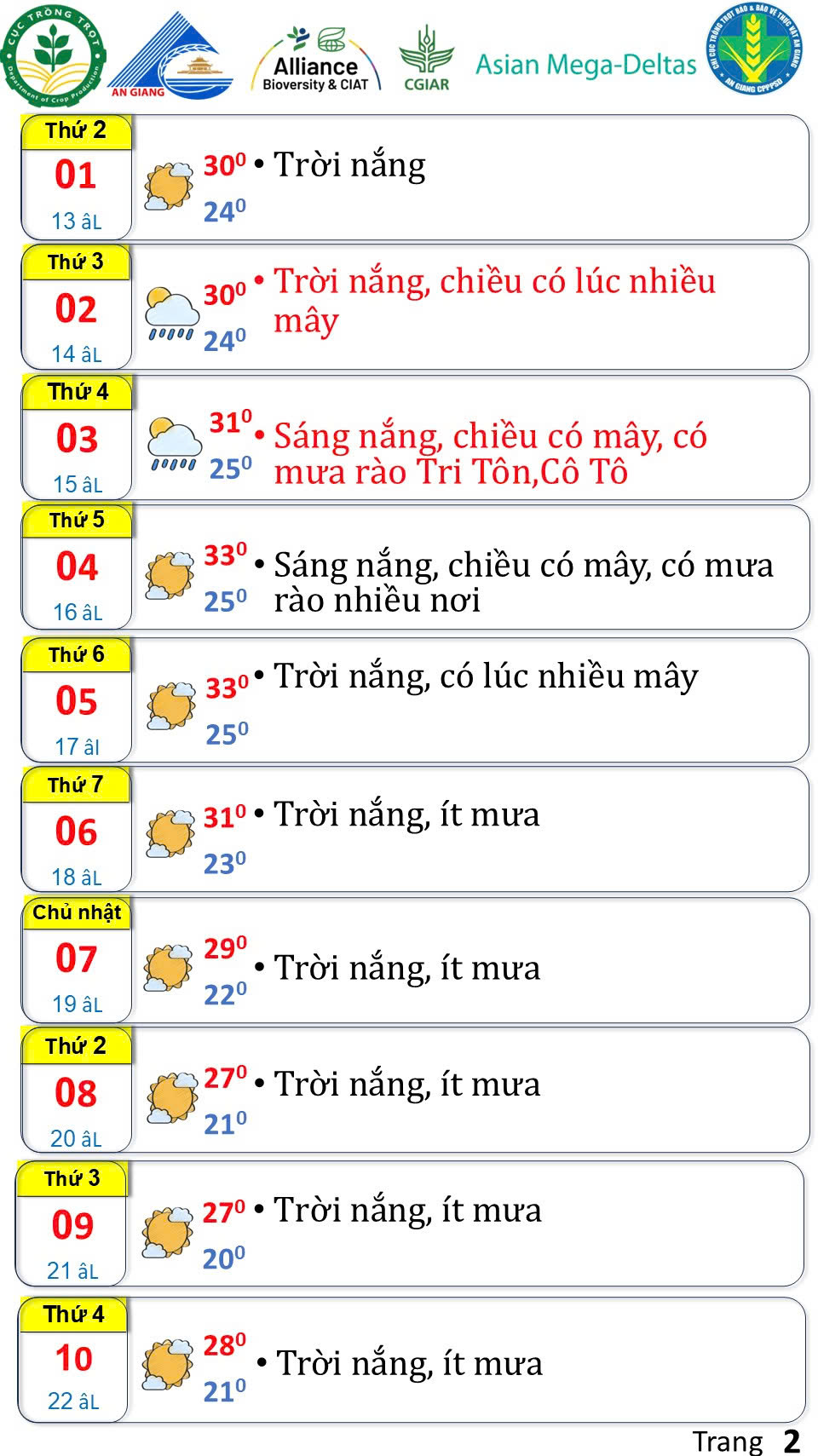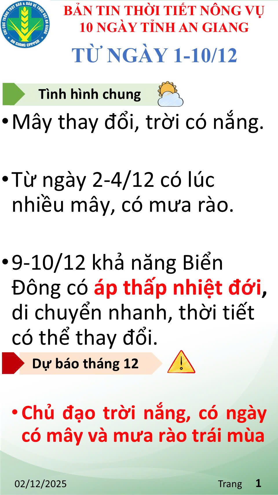 Bản tin thời tiết nông vụ tỉnh An Giang