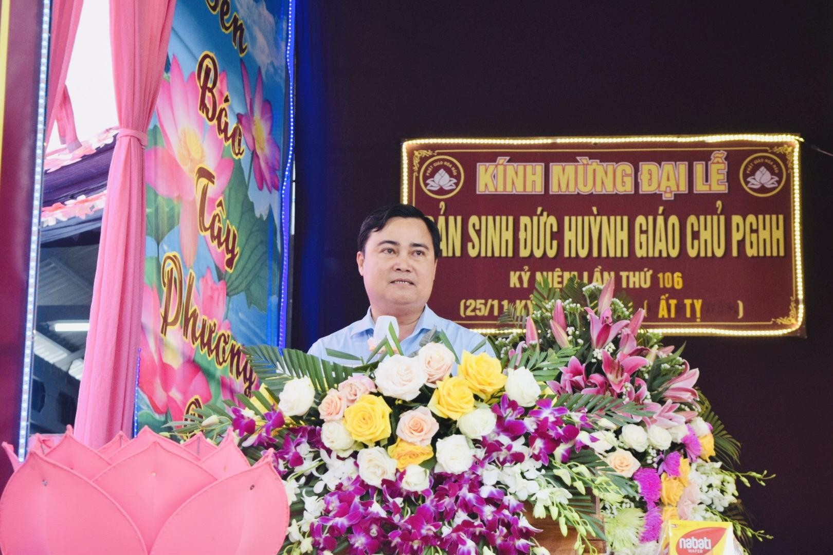 Phát biểu tại Đại lễ, ông Phạm Minh Phong, Chủ tịch Ủy ban Mặt trận Tổ quốc Việt Nam xã Bình Hòa ghi nhận và đánh giá cao những đóng góp tích cực của Ban Trị sự và đồng bào tín đồ Phật giáo Hòa Hảo trong công tác đạo sự, hoạt động từ thiện – xã hội tại địa phương; đồng thời mong muốn tiếp tục phát huy truyền thống “tốt đời, đẹp đạo”, đoàn kết, đồng hành cùng chính quyền và Mặt trận Tổ quốc trong việc thực hiện tốt các phong trào thi đua yêu nước, góp phần xây dựng xã Bình Hòa ngày càng phát triển.