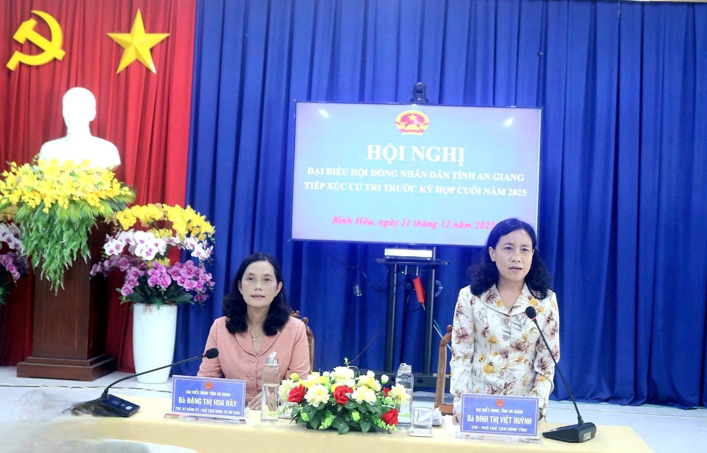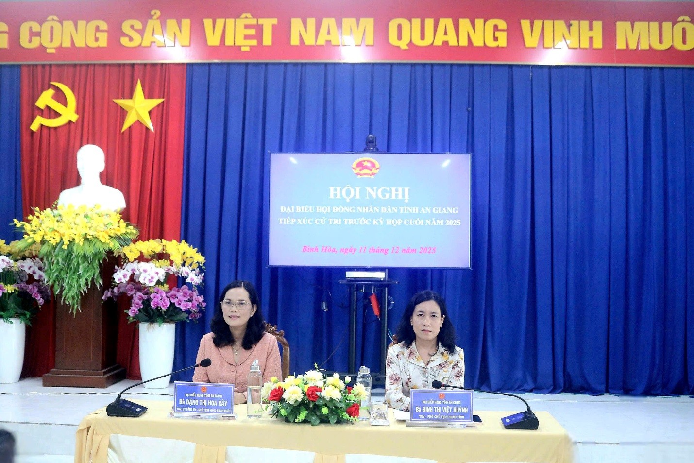 Chiều ngày 11/12/2025, tại Hội trường UBND xã Bình Hòa, Tổ Đại biểu số 4 HĐND tỉnh tổ chức buổi tiếp xúc cử tri trước kỳ họp thường lệ cuối năm 2025. Buổi tiếp xúc có sự tham dự của Bà Đinh Thị Việt Huỳnh- Tỉnh ủy viên, Phó Chủ tịch HĐND tỉnh; Bà Đặng Thị Hoa Rây- Tỉnh ủy viên, Bí thư Đảng ủy, Chủ tịch HĐND xã An Châu. Về cấp xã có ông Trần Hữu Phúc- Phó Bí thư Thường trực Đảng ủy; Ông Nguyễn Tấn Phong- Phó Bí thư Đảng ủy, Chủ tịch UBND xã; Ông Nguyễn Anh Trường- Phó Chủ tịch HĐND xã cùng đông đảo cử tri đại diện cho các ấp trên địa bàn xã.