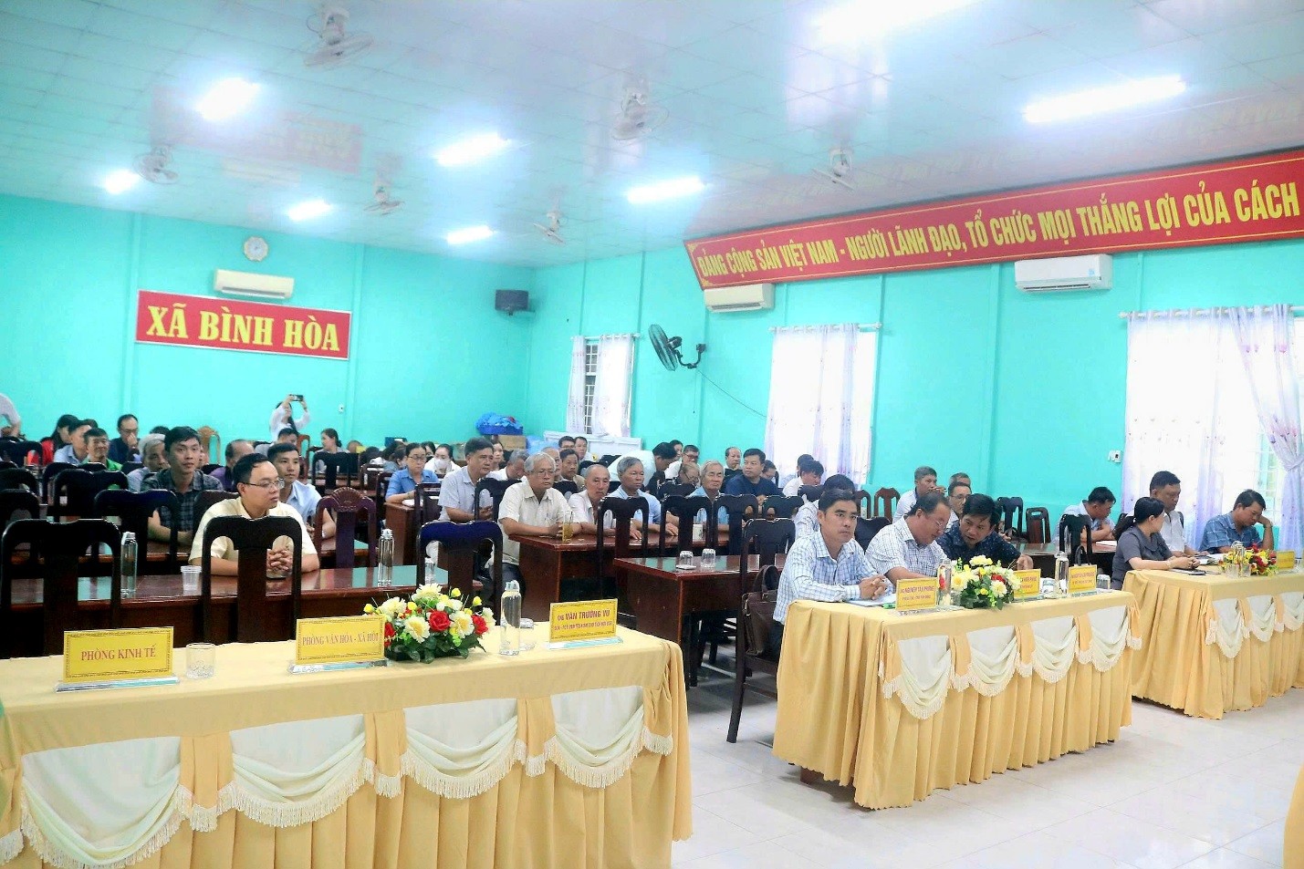 Tại hội nghị, đại biểu HĐND tỉnh đã thông báo tới cử tri về thời gian, nội dung, chương trình dự kiến của kỳ họp cuối năm 2025 và tóm tắt tình hình phát triển kinh tế – xã hội của tỉnh trong năm qua. Sau khi nghe báo cáo, cử tri xã Bình Hòa rất đồng thuận và phấn khởi; đồng thời tham gia ý kiến sôi nổi và tập trung kiến nghị đến HĐND tỉnh một số nội dung trọng tâm sau: về giao thông đường thủy, cử tri đề nghị tỉnh quan tâm đầu tư, nạo vét, và quản lý chặt chẽ hơn đối với hệ thống giao thông đường thủy trên địa bàn để đảm bảo an toàn và thuận lợi cho việc vận chuyển hàng hóa, nông sản; về giao thông nông thôn, đề nghị có chính sách và nguồn lực để tiếp tục gia cố, nâng cấp các tuyến đường giao thông nông thôn đã xuống cấp, giúp người dân đi lại và sản xuất dễ dàng hơn; về hệ thống tưới tiêu, kiến nghị sớm xây dựng và hoàn thiện hệ thống tưới tiêu cho sản xuất nông nghiệp, đảm bảo nước tưới chủ động cho cây trồng, nâng cao năng suất và hiệu quả kinh tế. Về cải cách hành chính, đề xuất tỉnh tiếp tục đẩy mạnh công tác cải cách hành chính, rút ngắn thời gian giải quyết thủ tục, tạo điều kiện thuận lợi nhất cho người dân và doanh nghiệp.