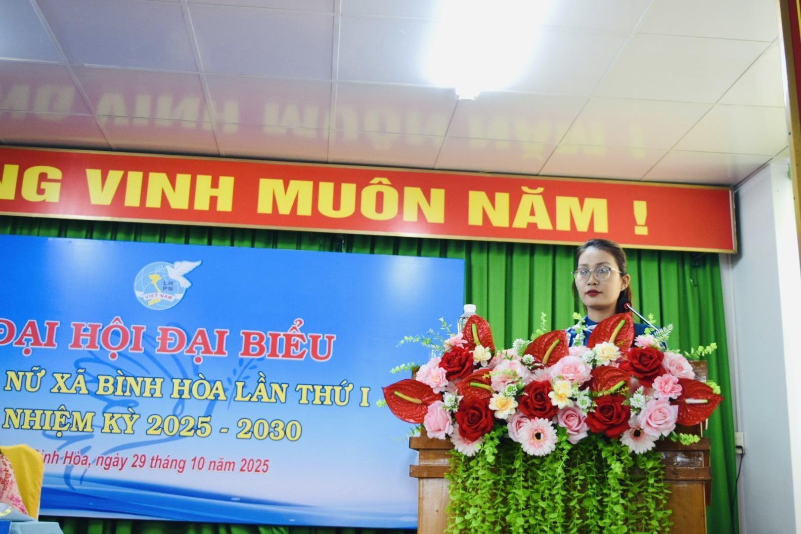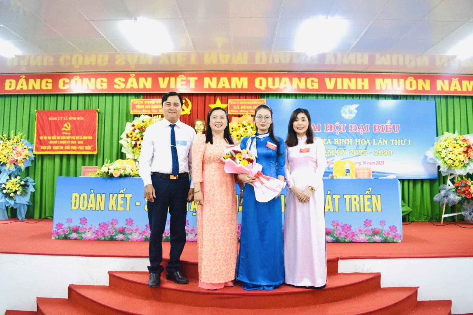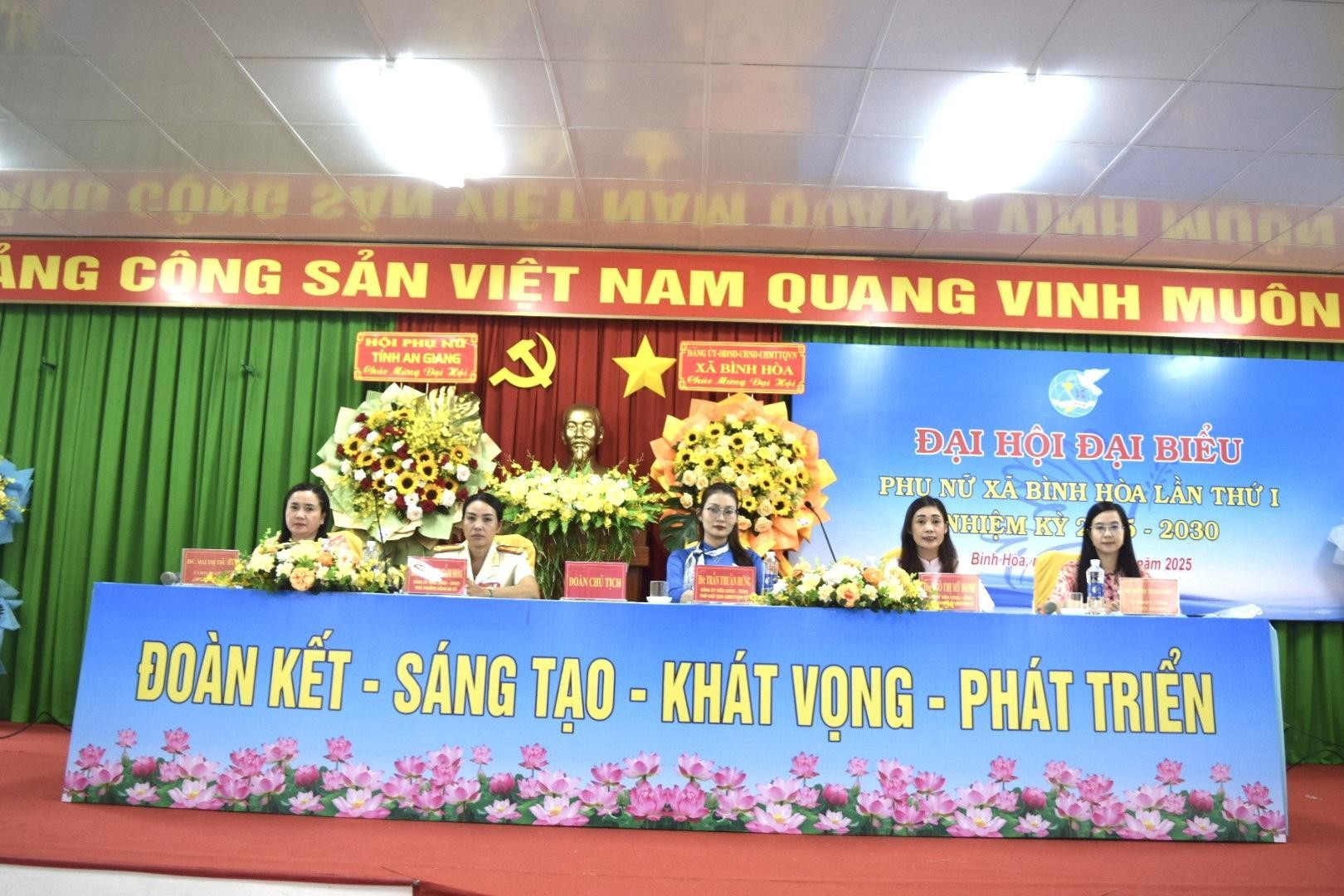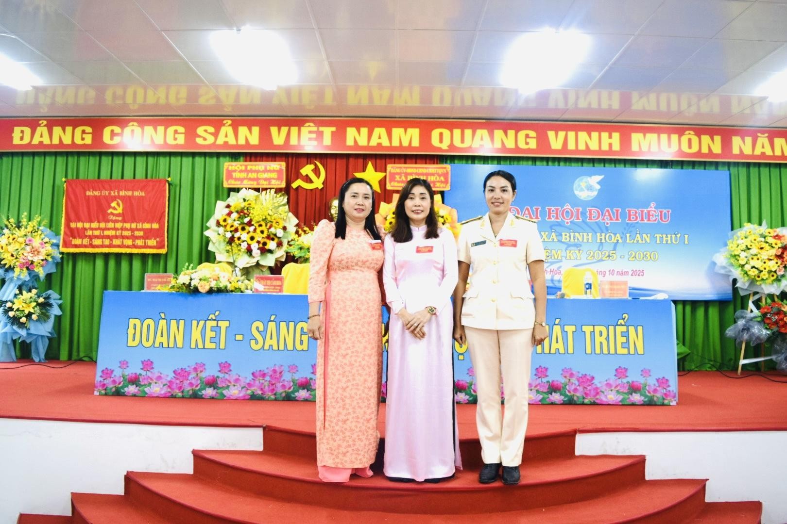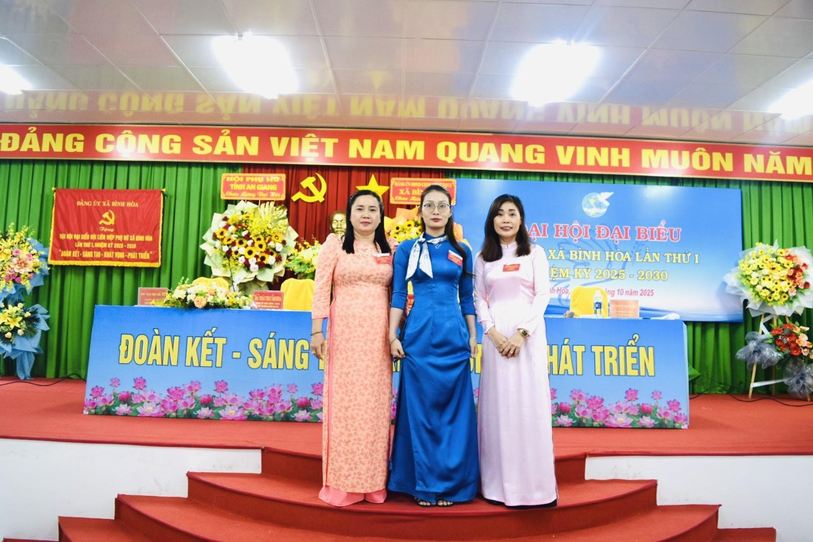 Ngày 29 tháng 10 năm 2025, tại Hội trường Đảng ủy xã, Hội Liên hiệp Phụ nữ xã Bình Hòa long trọng tổ chức Đại hội đại biểu lần thứ I, nhiệm kỳ 2025–2030. Đây là Đại hội chỉ định Ban Chấp hành Hội Liên hiệp Phụ nữ xã khóa I theo quyết định của Ban Thường vụ Hội Liên hiệp Phụ nữ tỉnh An Giang, sau khi xã Bình Hòa được thành lập mới trên cơ sở sáp nhập ba đơn vị hành chính: Bình Hòa, An Hòa và Bình Thạnh. Đến dự Đại hội có: Đồng chí Thái Thị Duy Ngân – Phó Chủ tịch Hội Liên hiệp Phụ nữ tỉnh An Giang, Đồng chí Trần Hữu Phúc – Phó Bí thư Thường trực Đảng ủy xã, Đồng chí Nguyễn Tấn Phong – Phó Bí thư Đảng ủy, Chủ tịch UBND xã Bình Hòa cùng các đồng chí Ủy viên Ban Thường vụ Đảng ủy, lãnh đạo HĐND, UBND, Ủy ban MTTQ Việt Nam xã; đại diện các ban, ngành, đoàn thể cùng 100 đại biểu chính thức, đại diện cho hơn 1.910 cán bộ, hội viên phụ nữ trong toàn xã Bình Hòa.