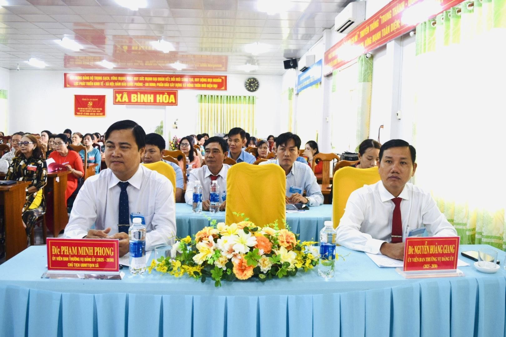 Phát biểu đồng chí Nguyễn Tấn Phong – Phó Bí thư Đảng ủy, Chủ tịch UBND xã Bình Hòa đánh giá cao sự đóng góp của tổ chức Hội trong việc cùng địa phương thực hiện các mục tiêu phát triển kinh tế – xã hội, xây dựng đời sống văn hóa và giữ gìn an ninh trật tự ở cơ sở. Đồng chí nhấn mạnh Ban Chấp hành khóa mới cần phát huy hơn nữa tinh thần trách nhiệm, đoàn kết, chủ động, sáng tạo, gắn hoạt động Hội với các phong trào thi đua yêu nước, đặc biệt là việc hỗ trợ phụ nữ khởi nghiệp, phát triển kinh tế, góp phần thực hiện thắng lợi Nghị quyết Đại hội Đảng bộ xã nhiệm kỳ 2025–2030.