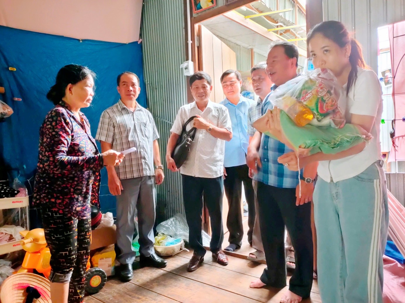 Tại nơi đến thăm, ông Trần Hữu Phúc, Phó bí thư thường trực Đảng ủy xã Bình Hòa, thay mặt Đảng ủy, HĐND, UBND, UBMTTQVN xã Bình Hòa đã ân cần thăm hỏi sức khoẻ, cũng như tình hình thiệt hại tài sản của gia đình, đồng thời, trao tiền hỗ trợ, tặng quà gồm các nhu yếu phẩm thiết yếu và mong muốn các gia đình cố gắng vượt qua khó khăn. Phó bí thư thường trực Đảng ủy xã yêu cầu nhân dân ấp, lực lượng dân quân khẩn trương hỗ trợ gia đình giải quyết hậu quả, sớm ổn định cuộc sống.