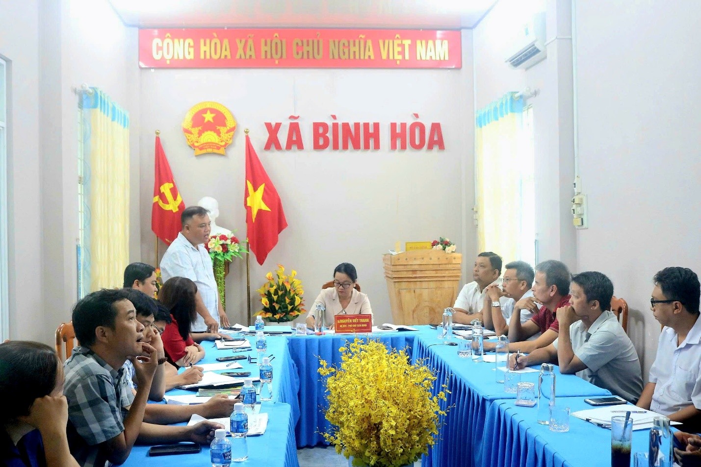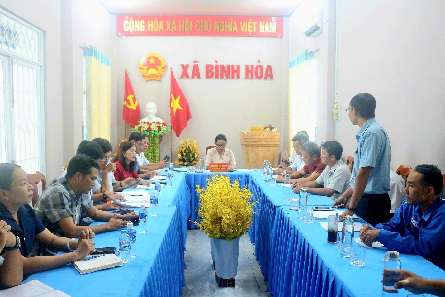 UBND xã Bình Hòa họp thông qua dự thảo Phương án di dời cơ sở hạ tầng liên quan đến dự án bồi thường, hỗ trợ, tái định cư, giải phóng mặt bằng cầu Bình Hòa, cầu Ông Quýt