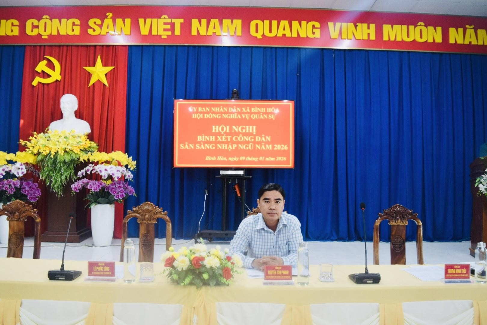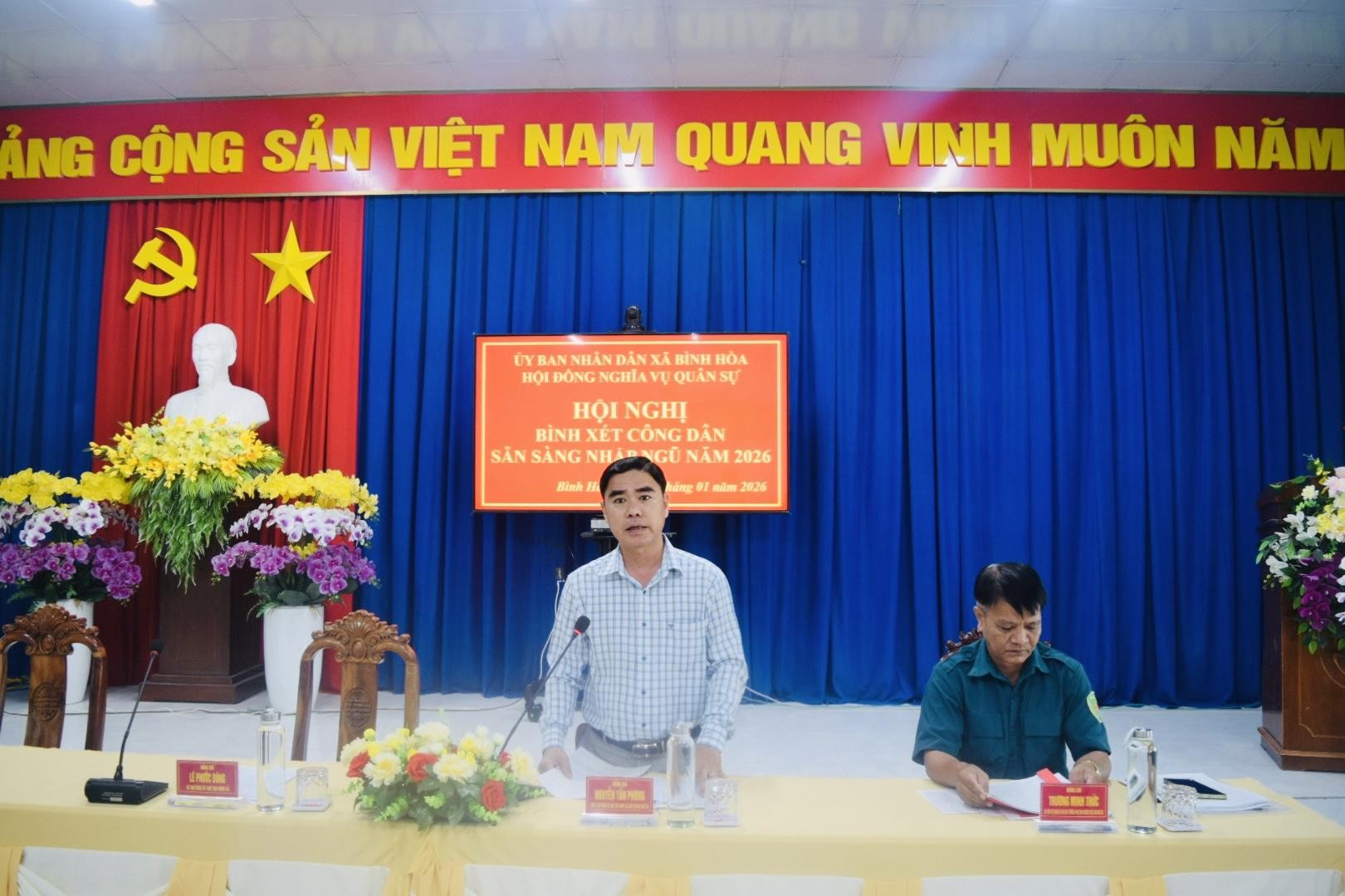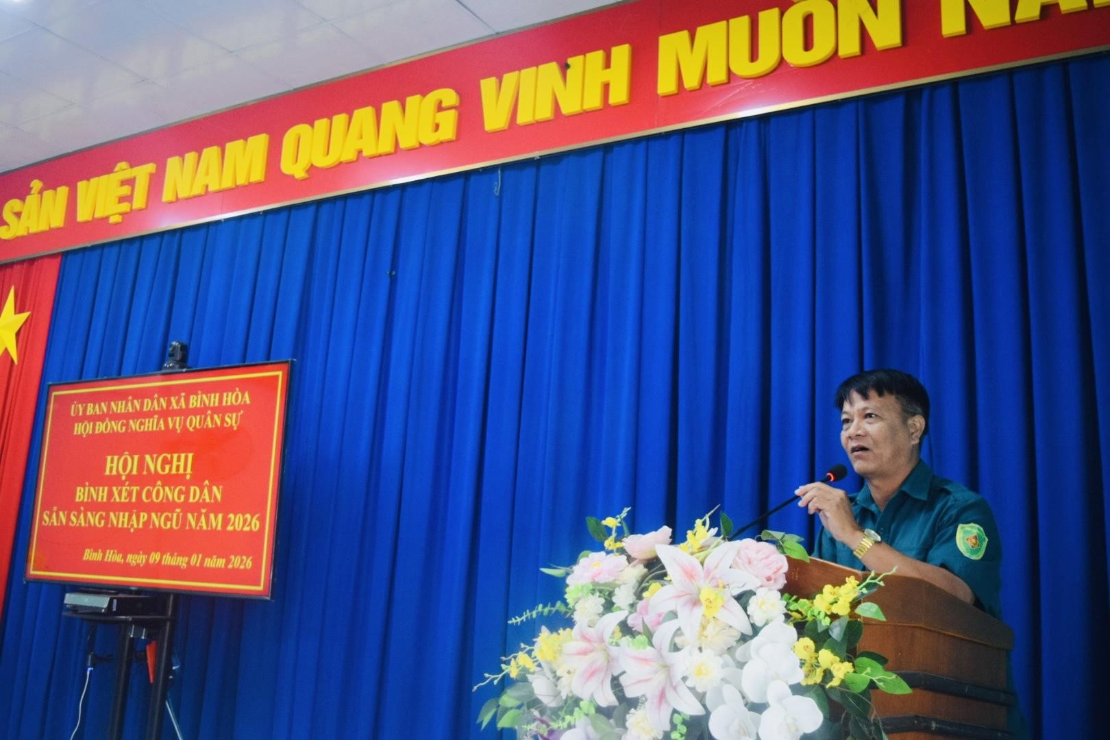 Hội nghị bình xét công dân đủ điều kiện gọi nhập ngũ năm 2026 của xã Bình Hòa đã diễn ra nghiêm túc, đúng quy trình, đúng quy định, góp phần bảo đảm hoàn thành chỉ tiêu tuyển chọn và gọi công dân nhập ngũ năm 2026 theo kế hoạch đề ra.