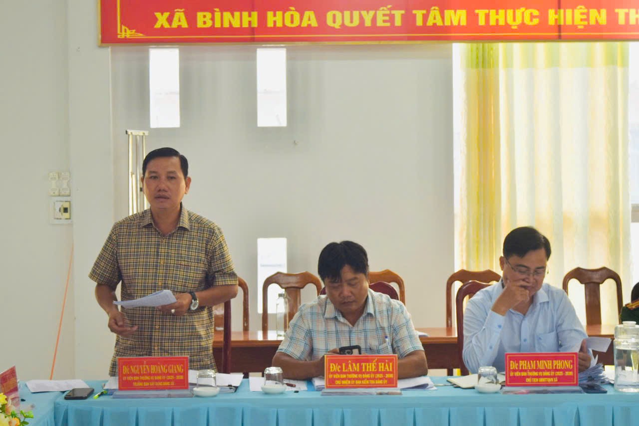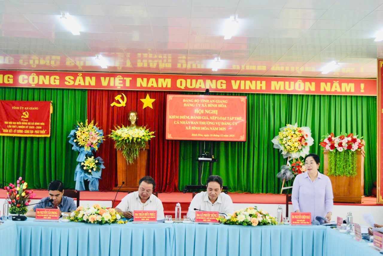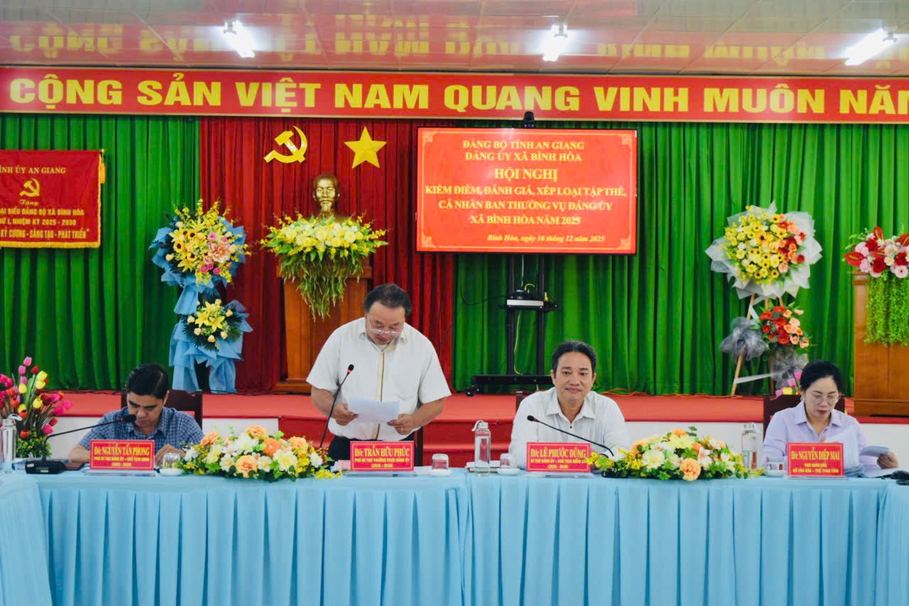 Sáng ngày 16/12/2025, Đảng ủy xã Bình Hòa tổ chức hội nghị kiểm điểm, đánh giá, xếp loại chất lượng tập thể và cá nhân các đồng chí Ủy viên Ban Thường vụ Đảng ủy năm 2025.