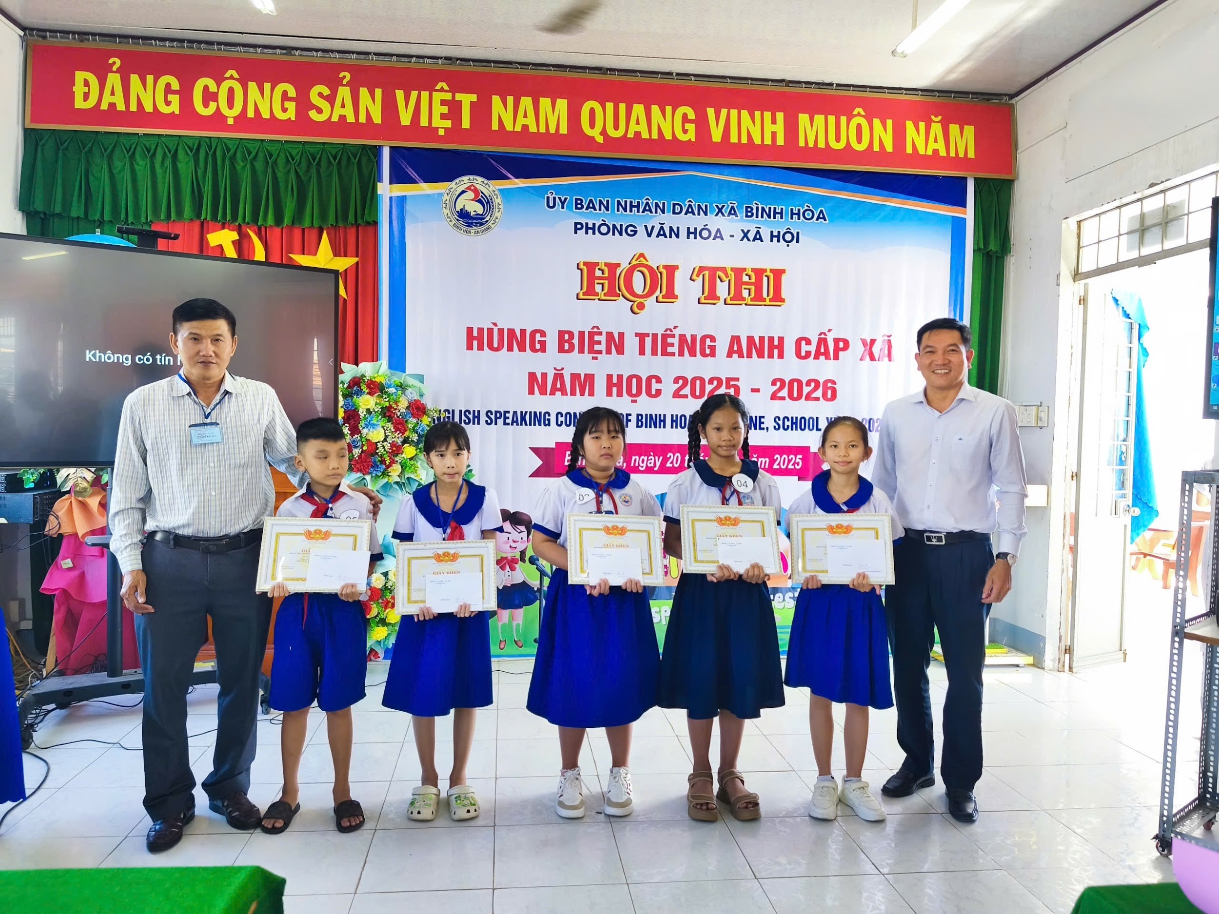 Kết thúc hội thi, Ban Tổ chức đã trao các giải Nhất, Nhì và Ba cho những thí sinh đạt thành tích cao, qua đó động viên, khích lệ phong trào học tập tiếng Anh trong học sinh trên địa bàn xã Bình Hòa.