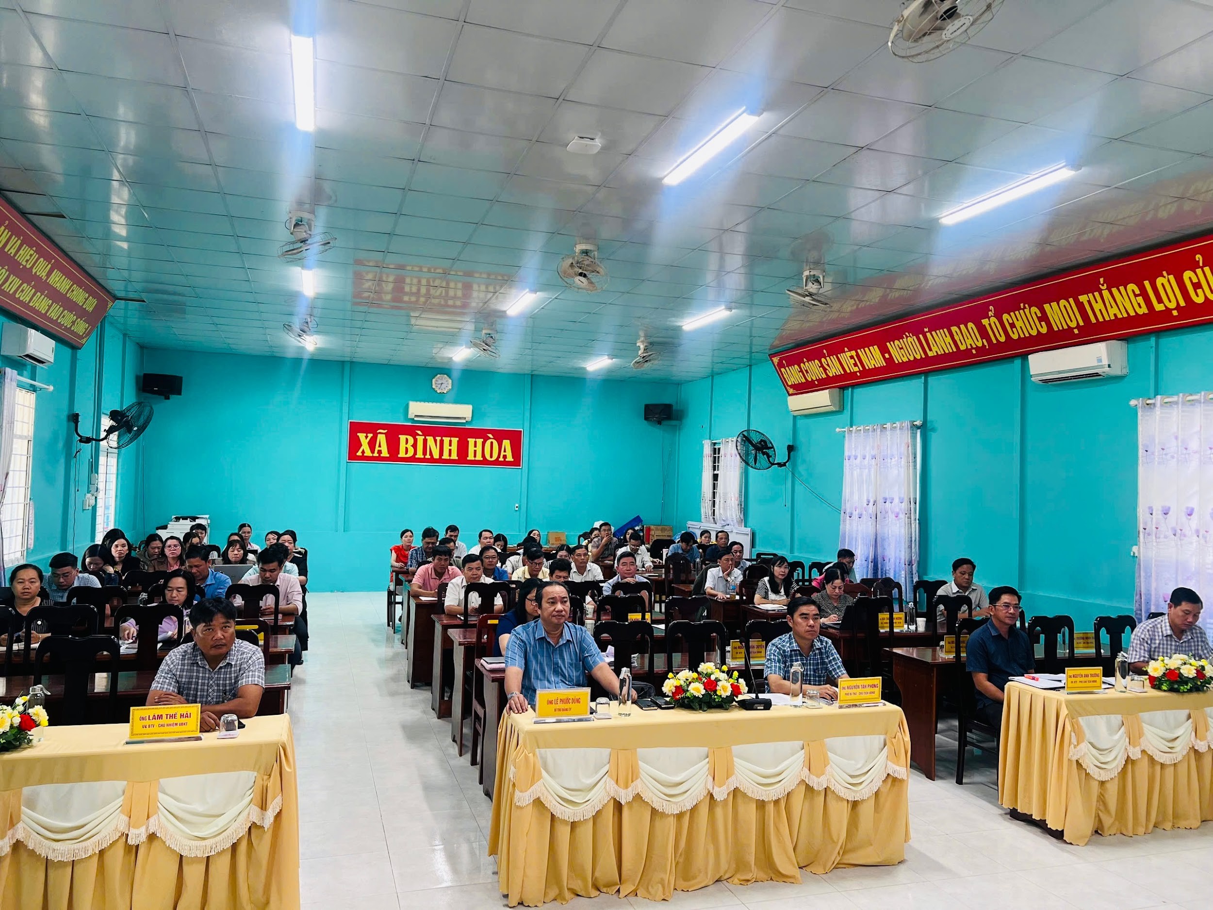 Tại điểm cầu xã Bình Hòa, đồng chí Lê Phước Dũng – Bí thư Đảng ủy xã chủ trì hội nghị; cùng dự có đồng chí Nguyễn Tấn Phong – Phó Bí thư, Chủ tịch UBND xã.