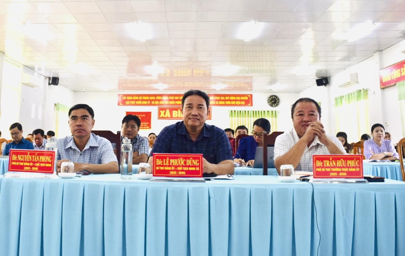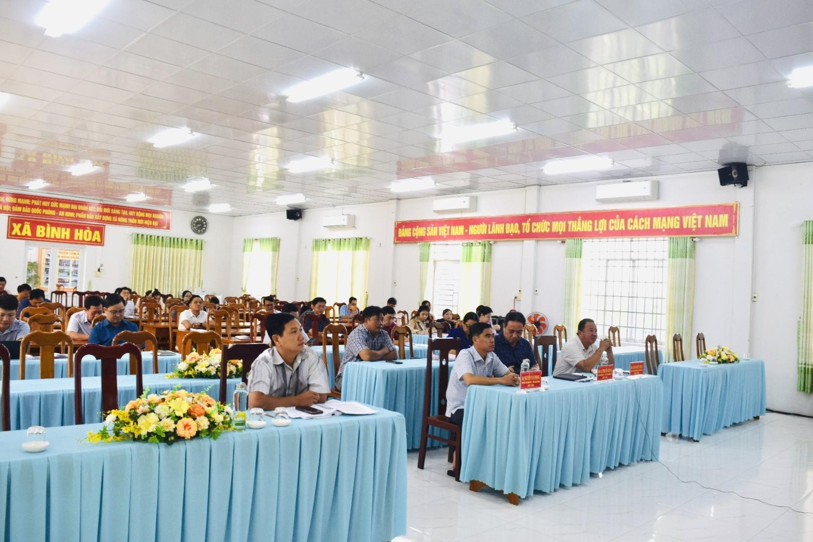 Tại điểm cầu xã Bình Hòa, tham dự có đồng chí Lê Phước Dũng, Bí thư Đảng ủy, Chủ tịch HĐND xã; đồng chí Trần Hữu Phúc, Phó Bí thư Thường trực Đảng ủy xã; đồng chí Nguyễn Tấn Phong, Phó Bí thư, Chủ tịch UBND xã, cùng các đồng chí trong Ban Chấp Hành Đảng bộ; trưởng, phó các ngành, đoàn thể và cán bộ chuyên môn của xã.