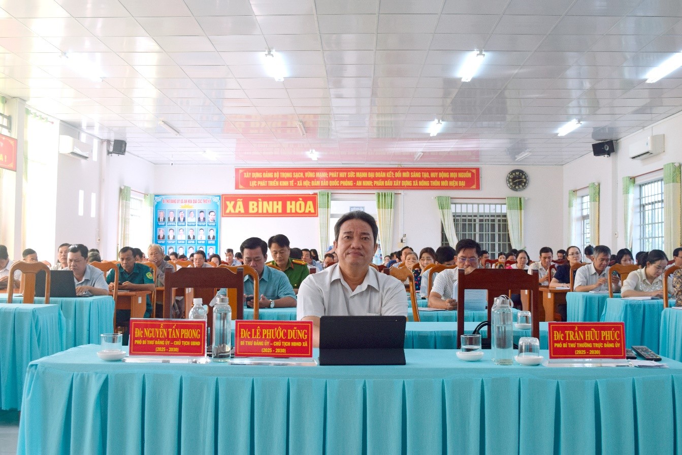 Sáng 9/9, xã Bình Hòa đã tham gia Hội nghị tập huấn ứng dụng trí tuệ nhân tạo AI cho cán bộ các đảng ủy và cơ quan đảng từ Trung ương đến cấp xã, phường (đợt 1). Hội nghị được kết nối trực tuyến tới gần 4.000 điểm cầu ở Trung ương, cấp tỉnh và cấp xã trong cả nước. Tham dự tại điểm cầu xã Bình Hòa có Đồng chí Lê Phước Dũng, Bí thư Đảng ủy, Chủ tịch HĐND xã Bình Hòa cùng các đồng chí trong Ban Thường vụ, Ban Chấp hành Đảng bộ xã; cán bộ, công chức, viên chức và người lao động của xã.