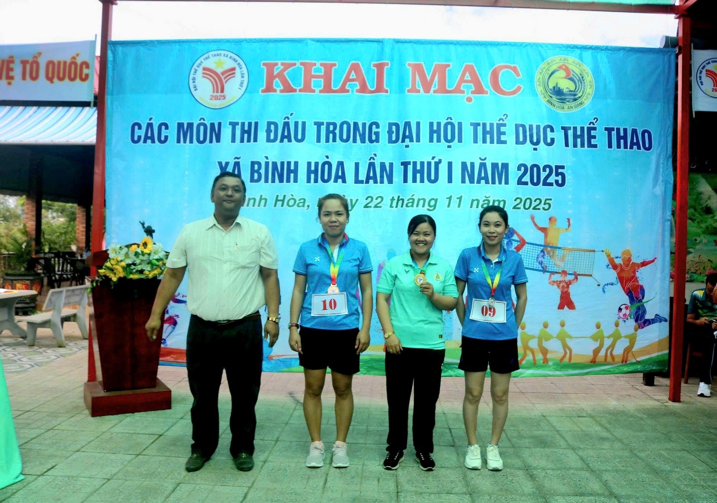 Sáng ngày 22/11/2025, tại Cồn Bà Hòa, xã Bình Hòa đã diễn ra Lễ Khai mạc Đại hội Thể dục Thể thao (TDTT) xã lần thứ I – năm 2025. Đây là sự kiện lớn nhằm thúc đẩy phong trào rèn luyện sức khỏe, hưởng ứng cuộc vận động “Toàn dân rèn luyện thân thể theo gương Bác Hồ vĩ đại”. Lễ khai mạc vinh dự có sự tham dự của ông Nguyễn Văn Quyền- Phó Chủ tịch UBND xã; Ông Phan Quốc Anh- Phó Trưởng Phòng Văn hóa- xã hội xã; Ông Lê Hữu Đức, Giám đốc Trung tâm Dịch vụ tổng hóp và đông đảo cán bộ, nhân dân và vận động viên (VĐV) đến từ các ấp, cơ quan, trường học trên địa bàn xã.