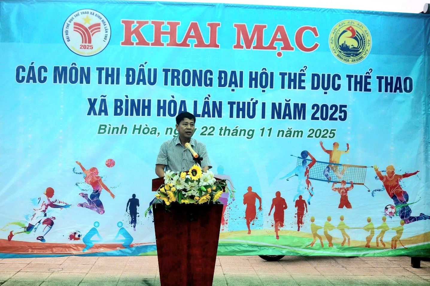 Phát biểu tại lễ khai mạc, ông Nguyễn Văn Quyền- Phó Chủ tịch UBND xã nhấn mạnh: “Đại hội lần này là bước chuẩn bị quan trọng để xã Bình Hòa lựa chọn những VĐV xuất sắc nhất tham gia Đại hội TDTT cấp trên. Chúng tôi mong muốn mỗi người dân Bình Hòa sẽ biến rèn luyện thể thao trở thành thói quen hàng ngày, góp phần xây dựng một cộng đồng khỏe mạnh và phát triển”. Đại hội năm nay thu hút đông đảo VĐV tranh tài ở 08 môn thi đấu: Bóng đá nam 5 người, Đẩy gậy, Kéo co, Việt dã, Cầu lông, Bóng chuyền nam 6 người, Bóng chuyền hơi nữ và môn Pickleball, hứa hẹn mang lại những màn so tài gay cấn, đẹp mắt.