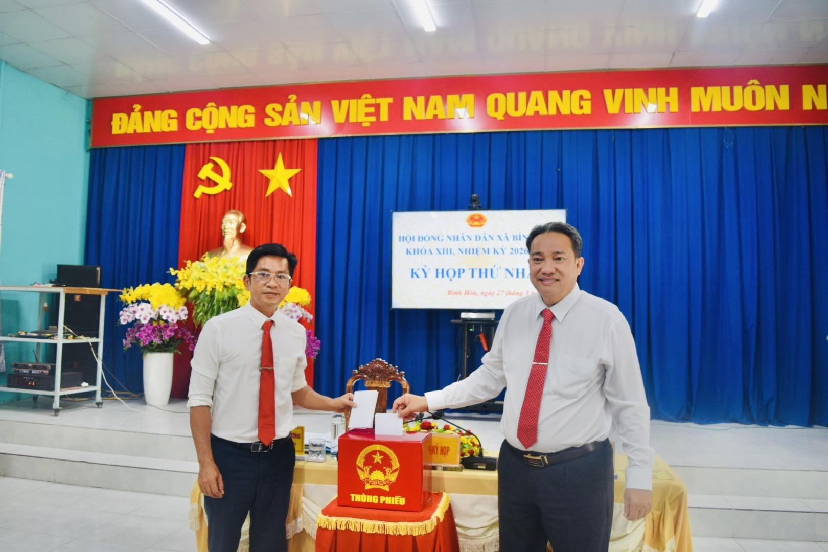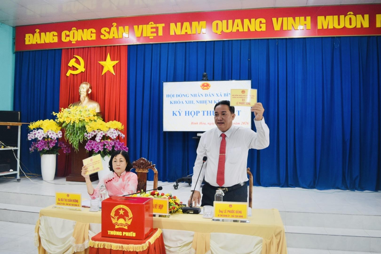 Kết quả, đồng chí Lê Phước Dũng – Bí thư Đảng ủy, Chủ tịch HĐND xã khóa XII, nhiệm kỳ 2021–2026 được tín nhiệm tái cử giữ chức Chủ tịch HĐND xã khóa XIII, nhiệm kỳ 2026–2031. Đồng chí Bùi Thị Xuân Hương – Trưởng phòng văn hoá xã hội được tín nhiệm bầu giữ chức Phó Chủ tịch HĐND xã khóa XIII, nhiệm kỳ 2026–2031.