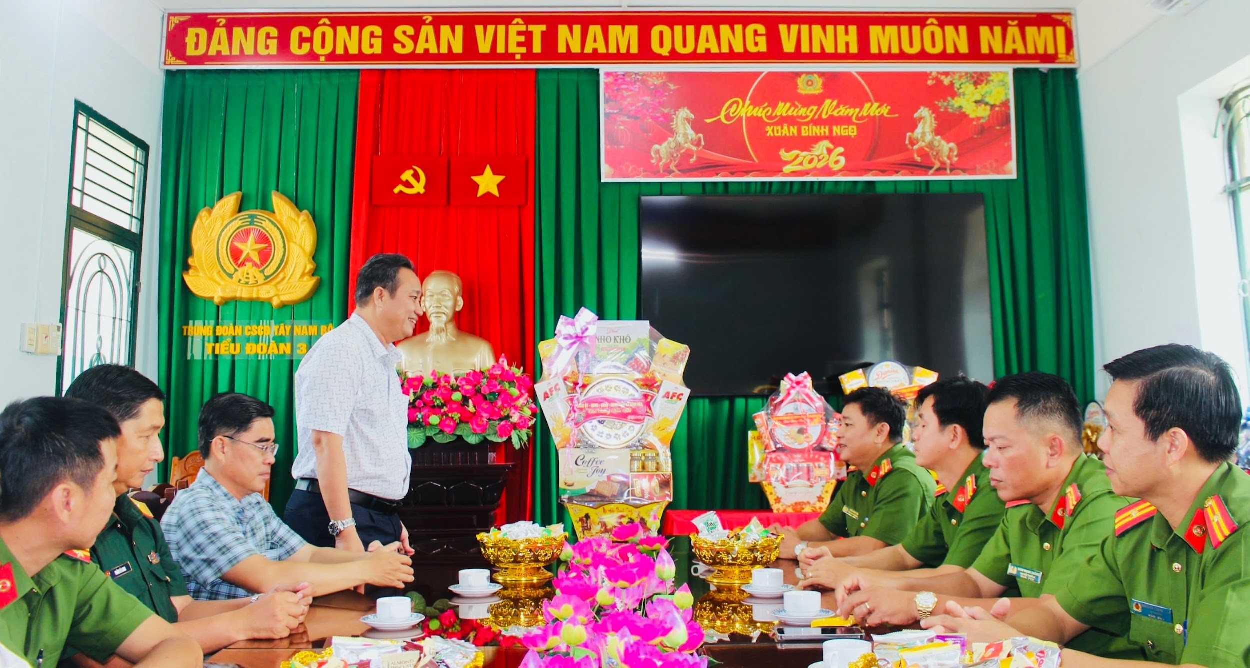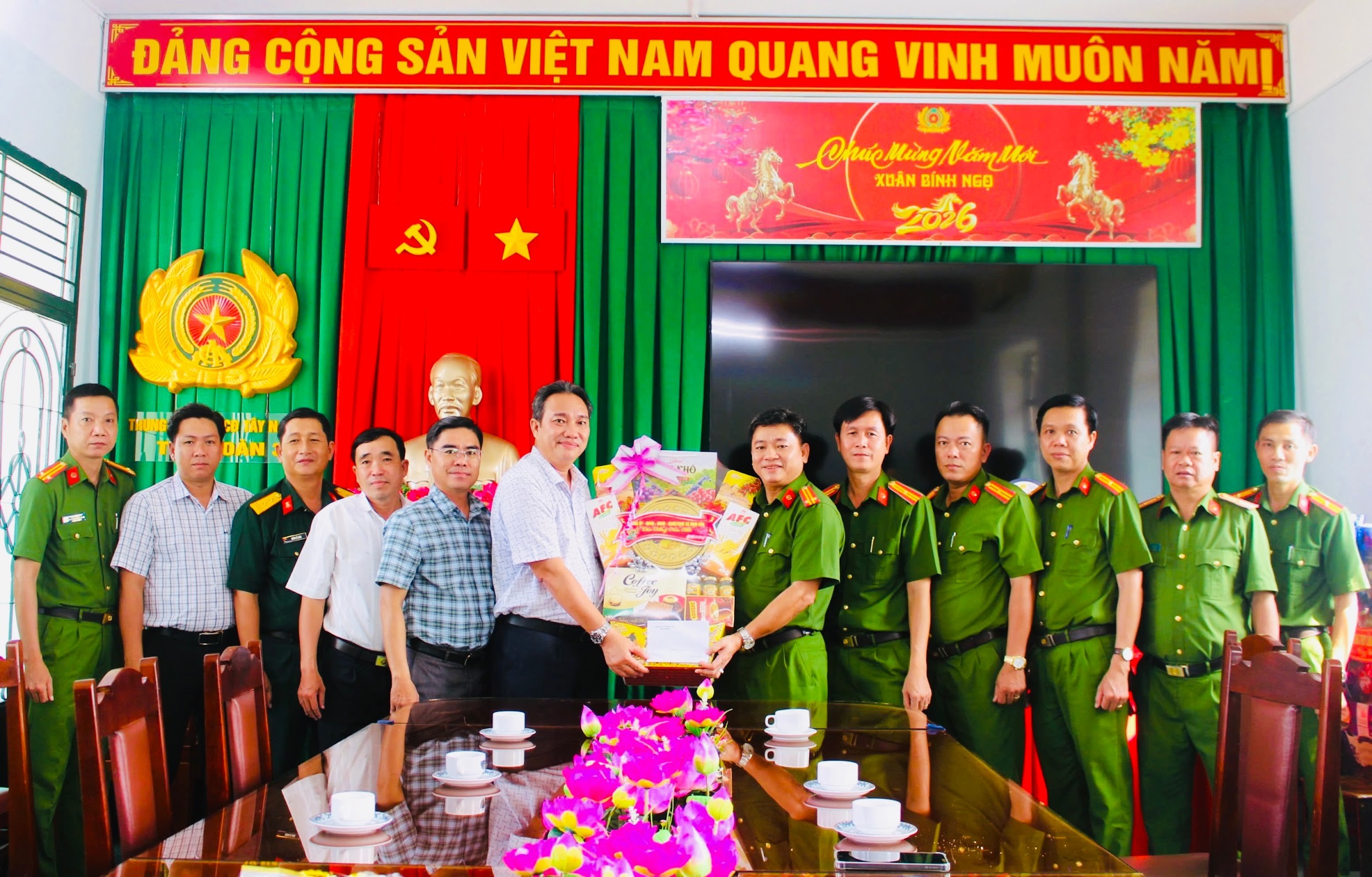 Nhân dịp Tết Nguyên đán, ngày 13/2, lãnh đạo Đảng ủy, HĐND, UBND, Ủy ban MTTQ Việt Nam xã Bình Hòa đã tổ chức đoàn đến thăm, chúc Tết các đơn vị lực lượng vũ trang đóng quân trên địa bàn xã. Đoàn công tác do đồng chí Lê Phước Dũng – Bí thư Đảng ủy xã, Chủ tịch HĐND xã làm Trưởng đoàn; cùng tham gia đoàn có đồng chí Nguyễn Tấn Phong – Phó Bí thư Đảng ủy, Chủ tịch UBND xã và đại diện các ban, ngành, đoàn thể xã.
