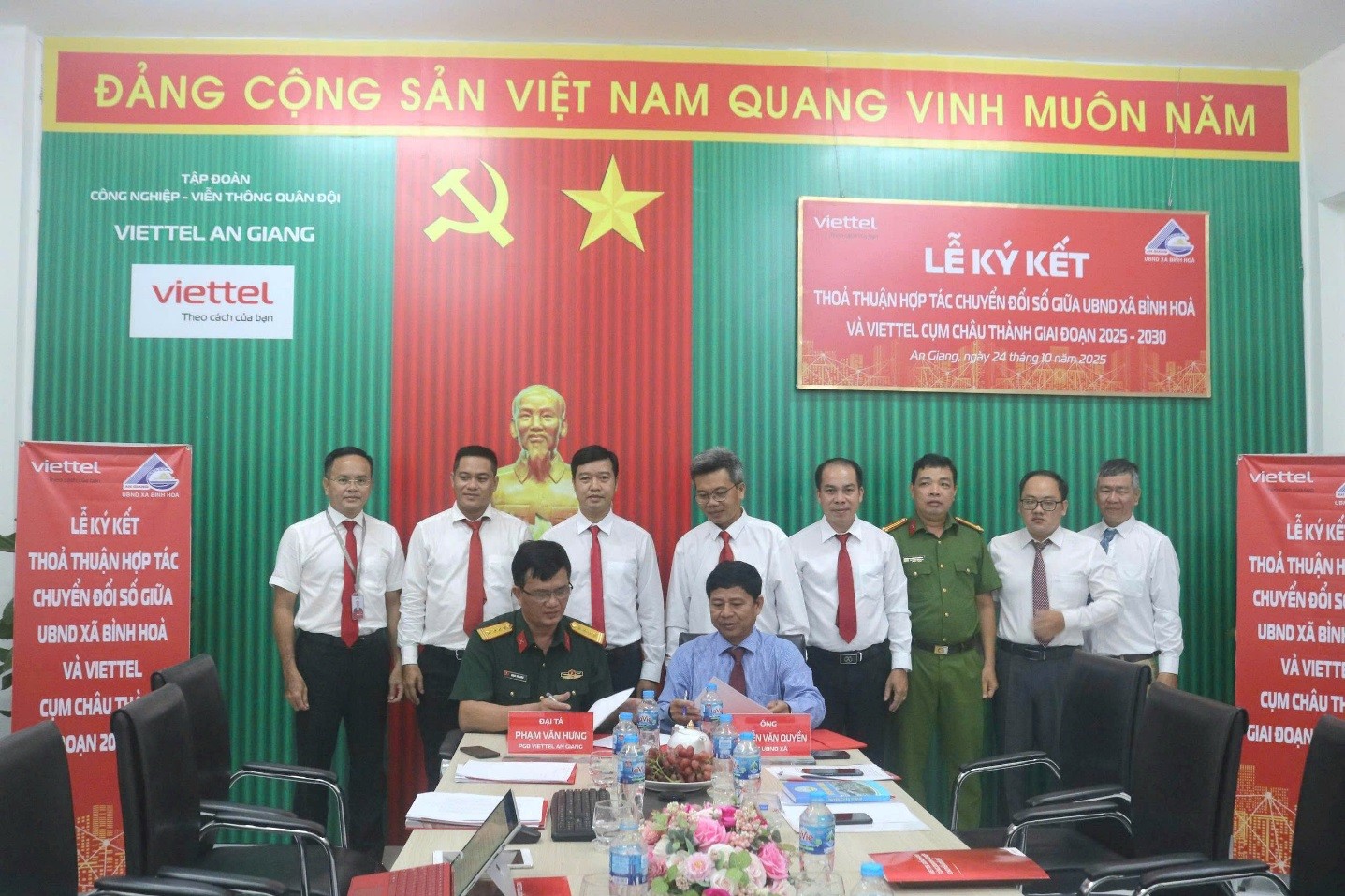 Lễ ký kế thỏa thuận hợp tác chuyển đổi số giữa UBND xã Bình Hòa và Viettel An Giang giai đoạn 2025-2030