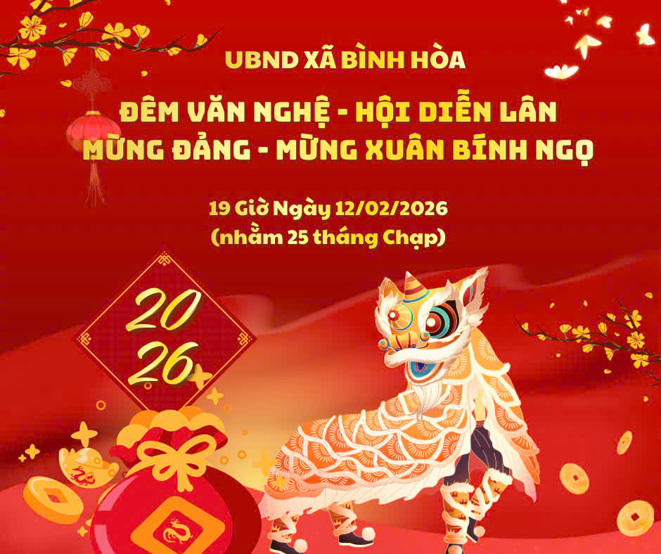 Thông báo Lịch hoạt động tết 06/02/2026 - aA + Submitted by on 6 February 2026 Bài viết liên quan Nghị quyết về việc công bố kết quả bầu cử và danh sách những người trúng cử Đại biểu HĐND xã Bình Hòa khóa XIII, nhiệm kỳ 206-2031 20/03/2026 Thông báo về việc chủ sử dụng đất liền kề không ký tên vào biên bản mô tả ranh giới, mốc giới thửa đất và không phát sinh tranh chấp trong suốt thời gian đo đạc 18/03/2026 Thông báo về việc công khai hồ sơ đăng ký quyền sử dụng đất 18/03/2026 Thông báo niêm yết công khai thông báo về việc tiếp nhận công chứng văn bản phân chia di sản thừa kế của văn phòng công chứng Lê Hùng Liệt 06/03/2026 Thông báo niêm yết công khai thông báo về việc tiếp nhận công chứng văn bản phân chia di sản thừa kế của văn phòng công chứng Lê Hùng Liệt 06/03/2026 Quyết định cho phép chuyển mục đích sử dụng đất 04/03/2026