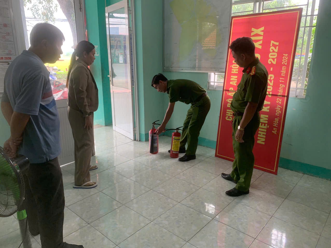 Tăng cường kiểm tra an toàn phòng cháy, chữa cháy tại các điểm bầu cử xã Bình Hòa