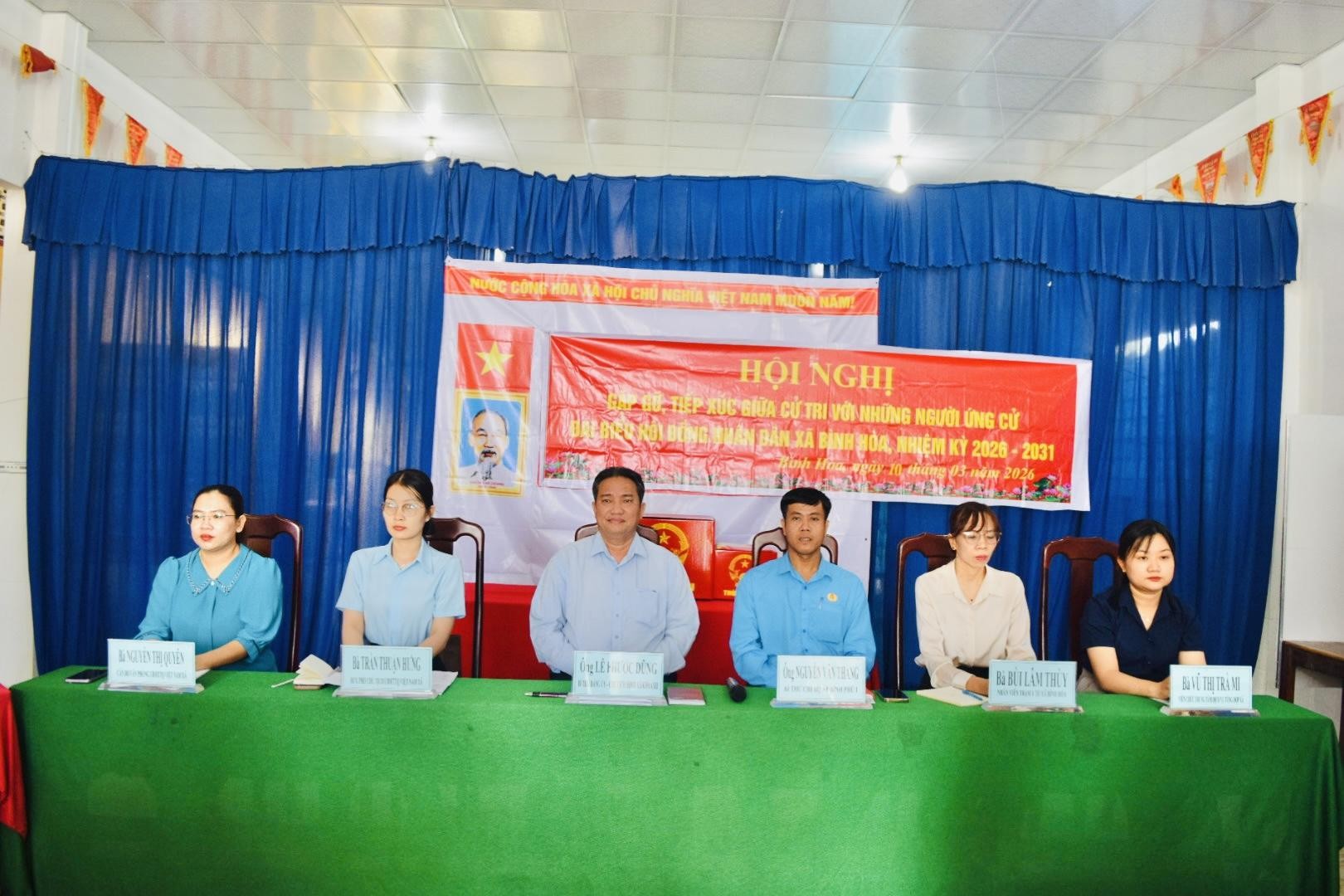 Từ ngày 09/3 đến ngày 11/3/2026, Ban Thường trực Ủy ban MTTQ Việt Nam xã Bình Hòa phối hợp với Ủy ban nhân dân xã tổ chức Hội nghị gặp gỡ, tiếp xúc giữa cử tri với những người ứng cử đại biểu Hội đồng nhân dân xã Bình Hòa nhiệm kỳ 2026 – 2031 tại các đơn vị bầu cử trên địa bàn xã.