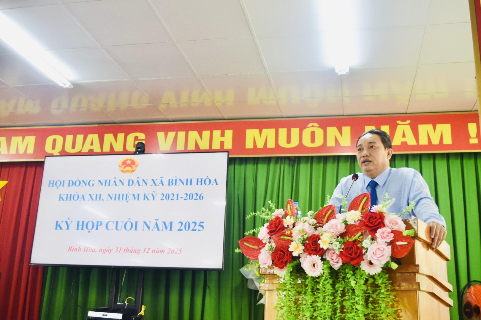 Kỳ họp thường lệ cuối năm HĐND xã Bình Hòa đã hoàn thành chương trình đề ra, tạo động lực để địa phương tiếp tục phấn đấu hoàn thành tốt các chỉ tiêu phát triển kinh tế – xã hội trong năm 2026.