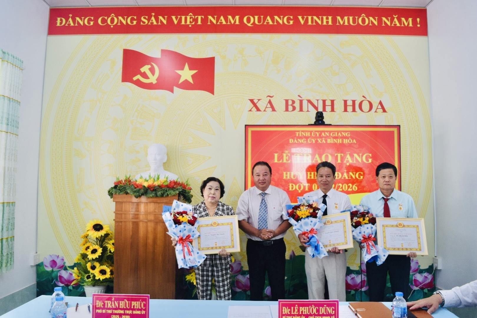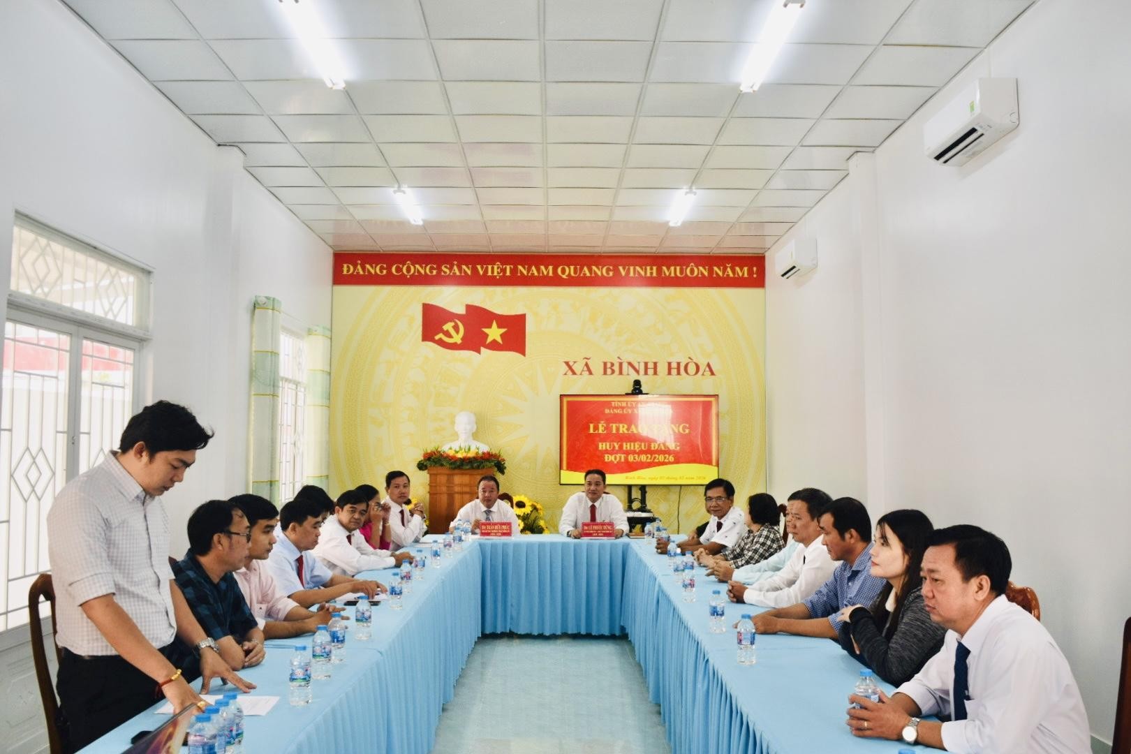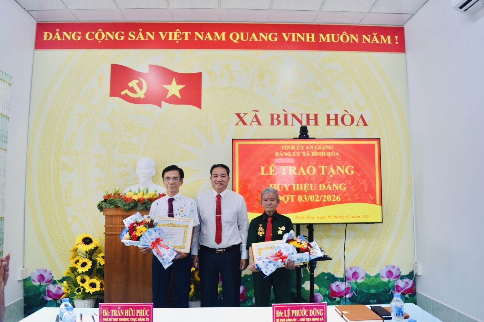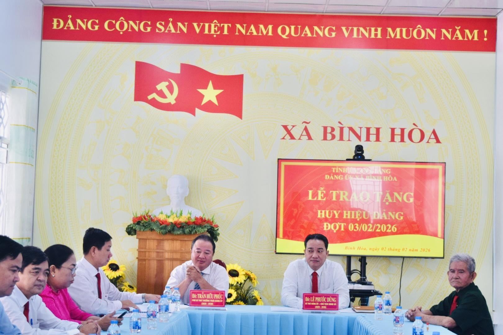 Sáng ngày 02/02/2026, Đảng ủy xã Bình Hòa long trọng tổ chức Lễ trao Huy hiệu Đảng đợt 03/02/2026 cho các đảng viên đủ tiêu chuẩn, nhân kỷ niệm 96 năm Ngày thành lập Đảng Cộng sản Việt Nam (03/02/1930 – 03/02/2026).