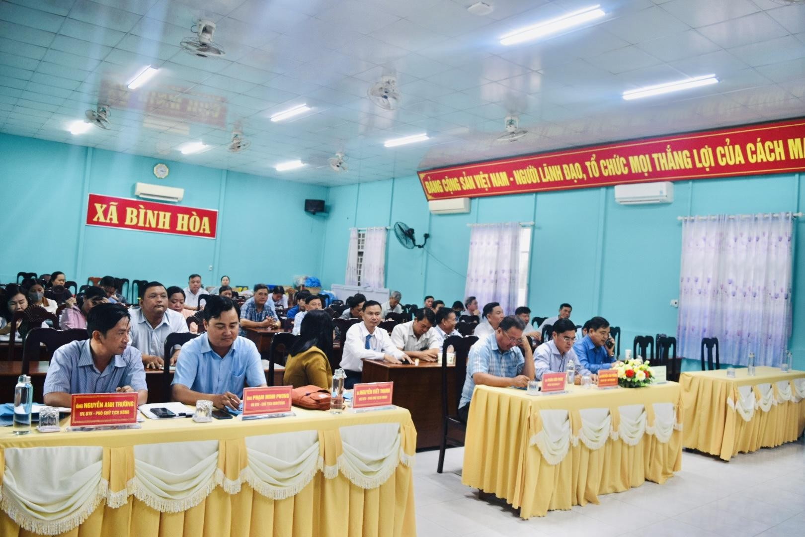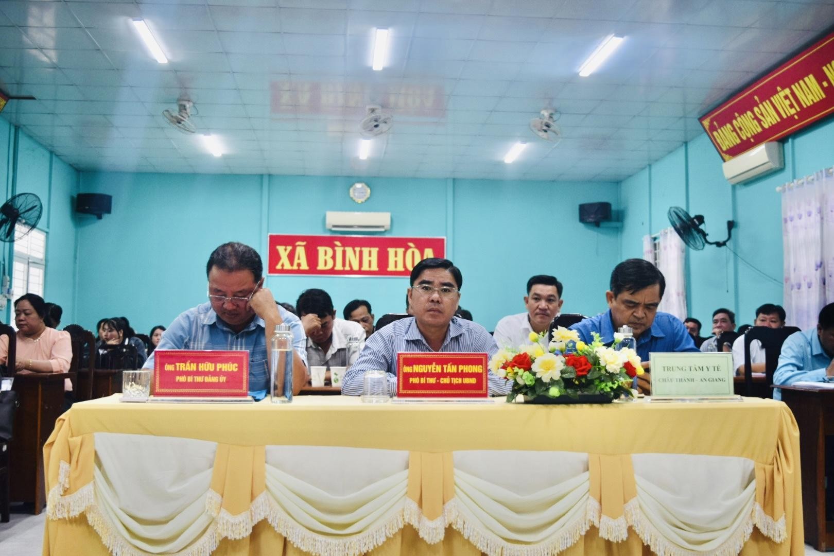 Phát biểu tại Hội nghị, đồng chí Nguyễn Tấn Phong – Phó Bí thư Đảng ủy, Chủ tịch UBND xã Bình Hòa chúc mừng Trạm Y tế xã Bình Hòa chính thức được thành lập và chúc mừng đồng chí Võ Văn Hai được bổ nhiệm giữ chức vụ Phó Giám đốc Trạm Y tế xã. Đồng chí nhấn mạnh việc kiện toàn tổ chức Trạm Y tế xã là yêu cầu cần thiết nhằm đáp ứng nhiệm vụ chăm sóc, bảo vệ và nâng cao sức khỏe Nhân dân trong tình hình mới. Đồng thời đề nghị Trạm Y tế xã sớm ổn định tổ chức, phân công nhiệm vụ cụ thể cho từng bộ phận, phát huy tinh thần đoàn kết, nâng cao chất lượng chuyên môn, thực hiện tốt công tác khám, chữa bệnh ban đầu và y tế dự phòng, góp phần thực hiện thắng lợi các mục tiêu phát triển kinh tế – xã hội của địa phương.