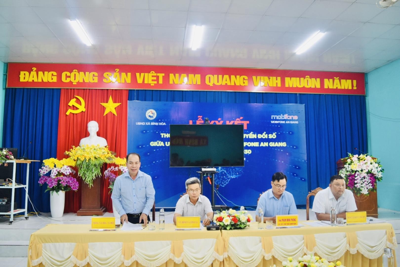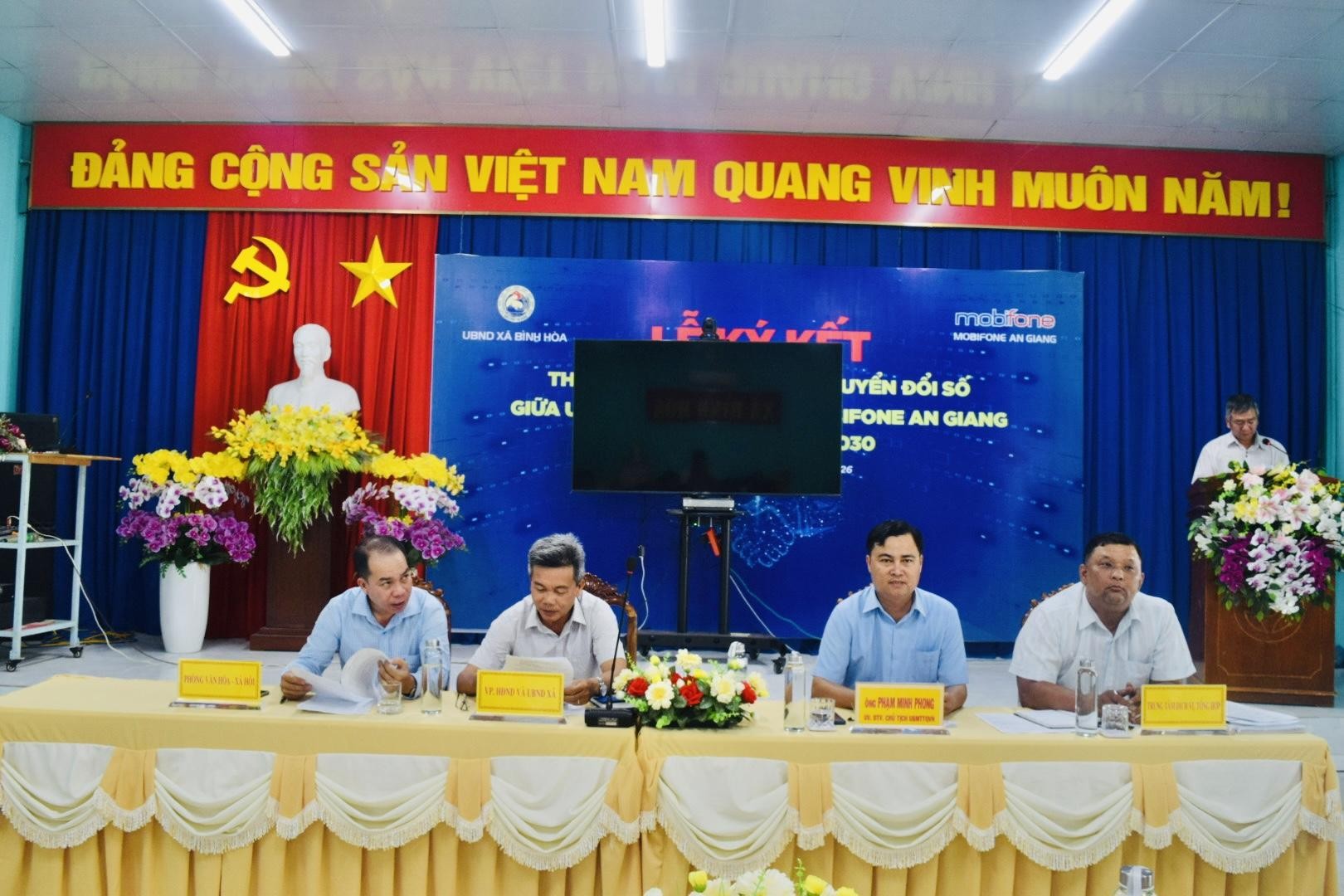 Đến dự buổi họp có ông Phạm Minh Phong – Chủ tịch Ủy ban Mặt trận Tổ quốc Việt Nam xã Bình Hòa; ông Nguyễn Thành Tâm – Phó Chánh Văn phòng HĐND và UBND xã Bình Hòa, cùng đại diện lãnh đạo các ban, ngành, đoàn thể xã; lãnh đạo Văn phòng Đảng ủy, HĐND và UBND xã; đại diện Công an xã, Ban Chỉ huy Quân sự xã; lãnh đạo các đơn vị chuyên môn; hiệu trưởng các trường học và trưởng các ấp trên địa bàn xã.
