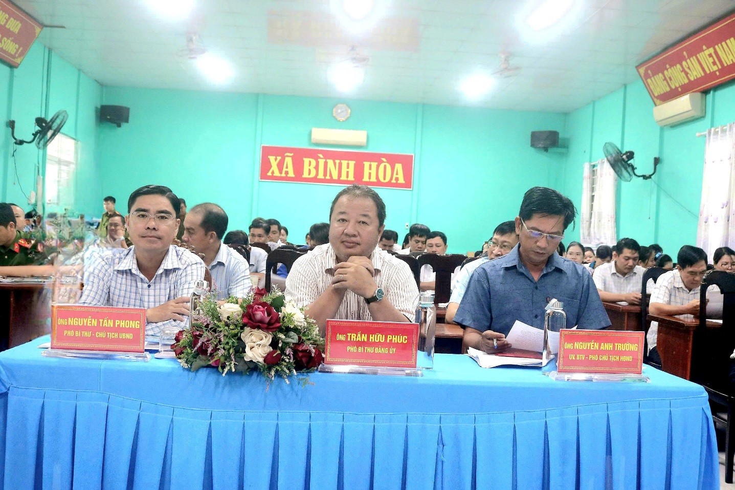 Sáng ngày 23/10/2025, UBND xã Bình Hòa tổ chức hội nghị triển khai kế hoạch xây dựng xã đạt tiêu chí “xã không ma túy” giai đoạn 2025 – 2030. Tham dự hội nghị có đồng chí Trần Hữu Phúc – Phó Bí thư Thường trực Đảng ủy; đồng chí Nguyễn Tấn Phong – Phó Bí thư, Chủ tịch UBND xã; đồng chí Nguyễn Anh Trường- Phó Chủ tịch HĐND xã;  Lãnh đạo Công an xã; trưởng các ban, ngành, đoàn thể, đại diện các đơn vị trường học, trạm y tế, lực lượng Công an xã, Ban Chỉ huy Quân sự xã, Bí thư chi bộ, Trưởng ấp và các thành viên Tổ bảo vệ an ninh cơ sở.